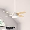 Size: 52"Color: Fresh White finishVerified PurchaseMe encanta que venga con focos que pueden disminuir el brillo, es perfecto que venga con control y aparte con su base para el control.