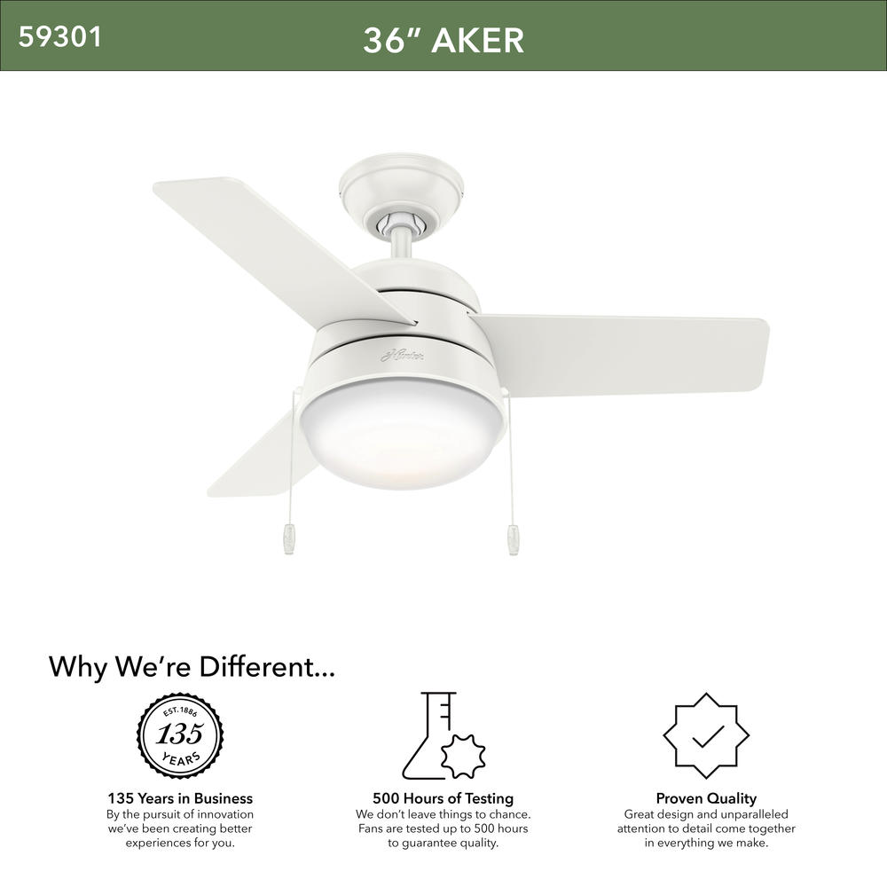 Hunter® Aker 36" Fresh White Indoor 2-Light Ceiling Fan