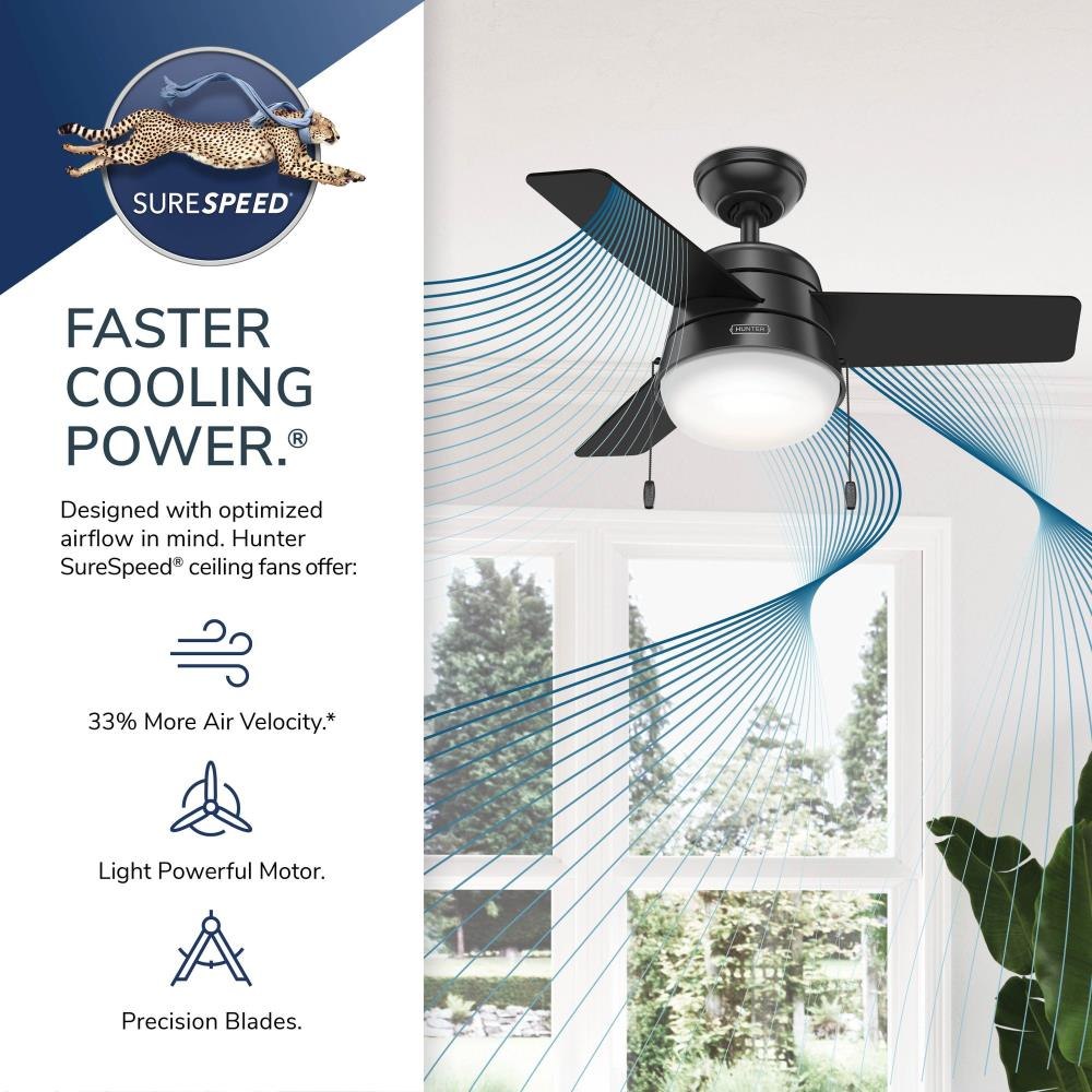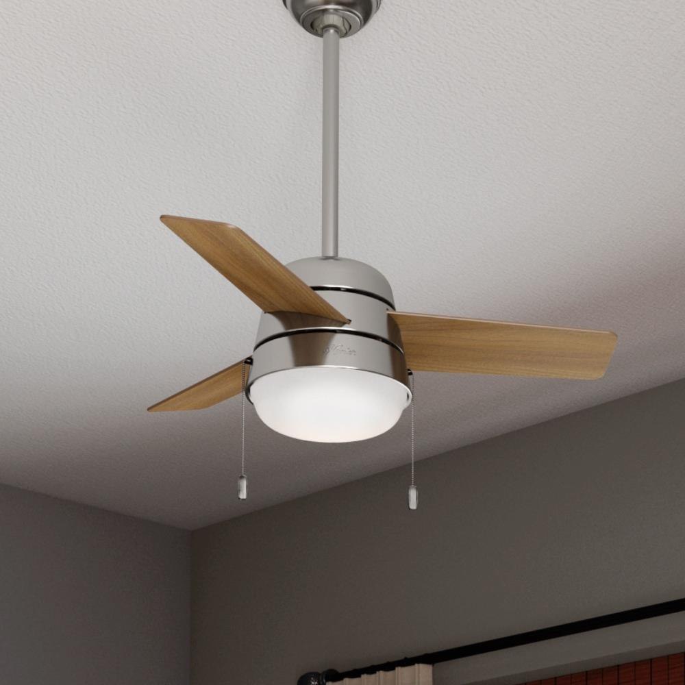 The Scandinavian-style lighting complemented by a mid-century color palette along with the rounded edges throughout the Aker gives it a soft, modern look. With a 36-inch blade span, these small ceiling fans with lights are perfect for spaces like home offices, hallways, and even bathrooms. But don't let the size fool you the Aker is quite powerful when it comes to airflow and keeping you cool. Energy-efficient LED bulbs provide just the right amount of light while the reversible, three-speed WhisperWind motor delivers ultra-powerful air movement with whisper-quiet performance.