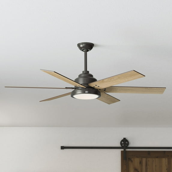 Hunter - Warrant Indoor Ceiling Fan With Light, Wall Control, 60-inch, Noble Bronze, Casual-style, 6-speed, Energy Star, 59461, for living rooms, bedrooms, home offices, kitchens