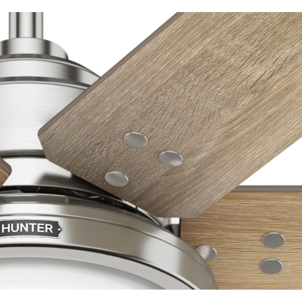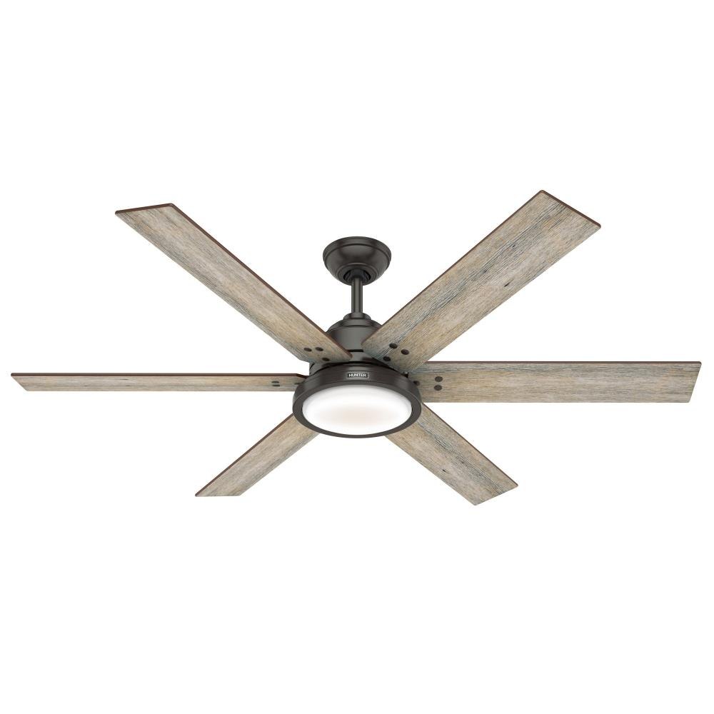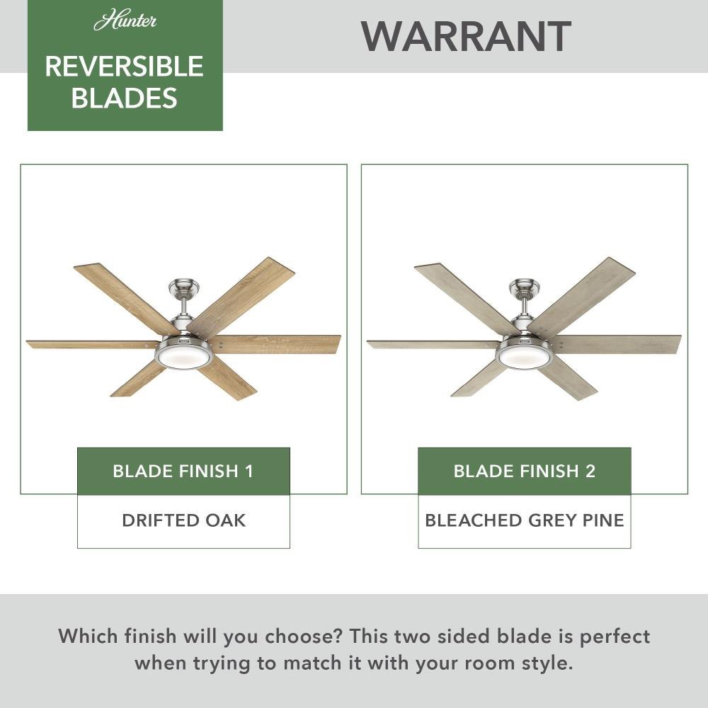 The Warrant great room ceiling fan is available in two sizes – a 60-inch ceiling fan and a 70-inch ceiling fan – to efficiently cool open-concept rooms while adding style to your decor. This farmhouse-style ceiling fan with a LED light features six reversible blades that are reminiscent of a windmill with rivet hardware attaching the blades to the housing. As a Hunter ENERGY STAR® certified ceiling fan, the Warrant is 64% more efficient on average than conventional fans* while helping you save you money on cooling costs.