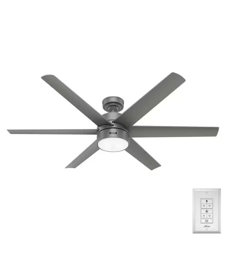 Hunter Solaria Ceiling Fan 60" Matte Silver Indoor Or Outdoor Remote ETL Rated