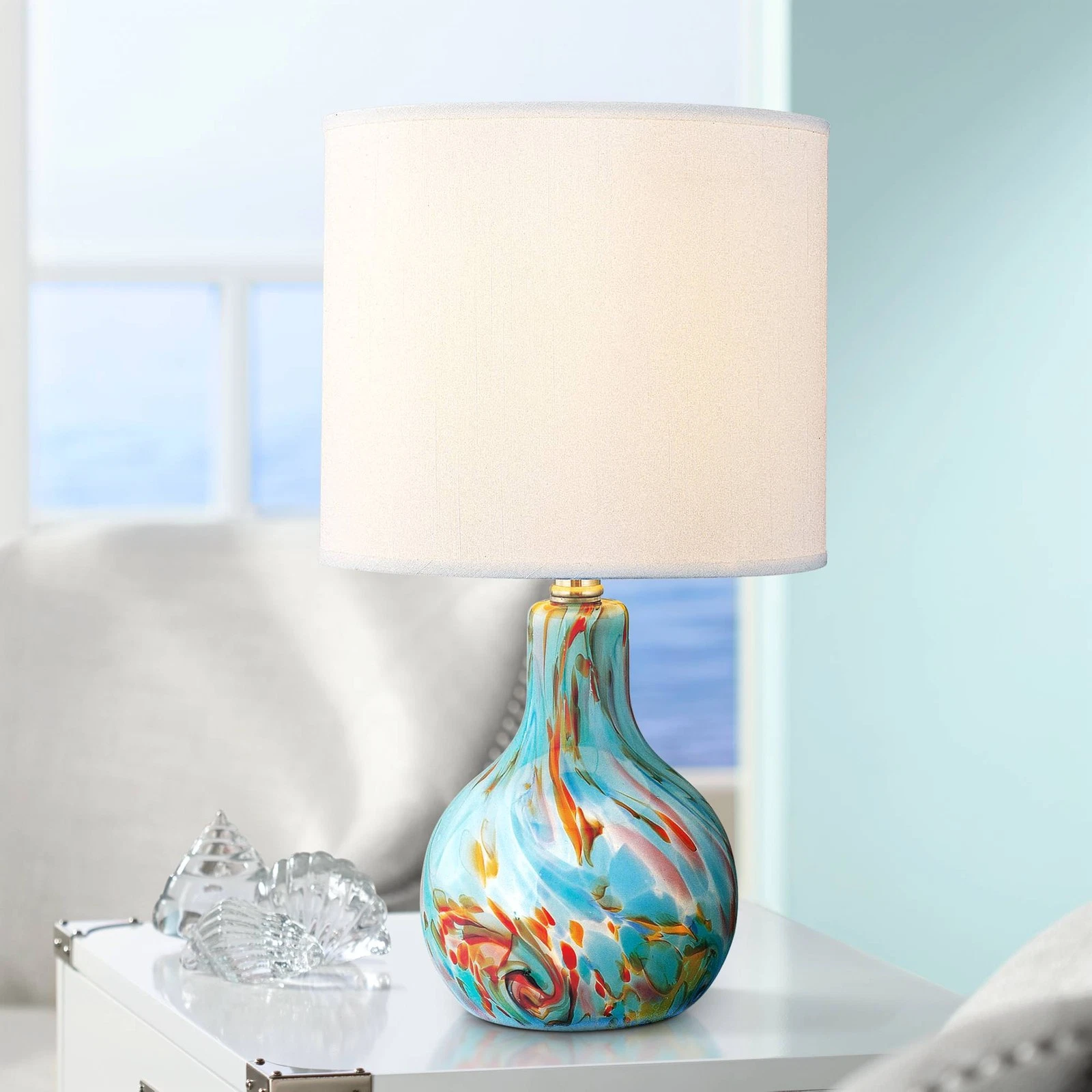 Lite Source 14 1/2" High Pepita Aqua Glass Night Light Table Lamp