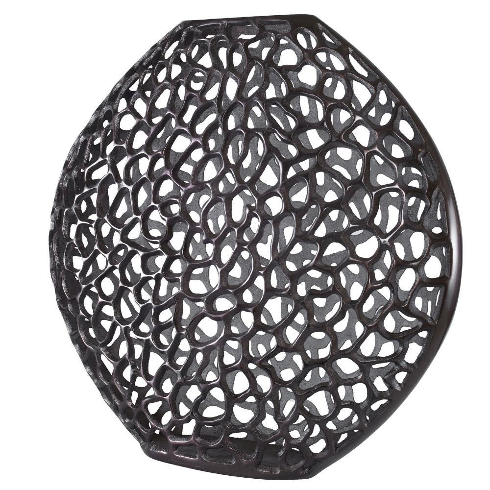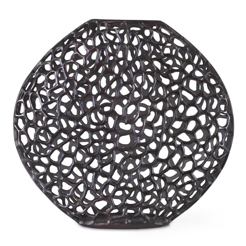 Crafted From Cast Aluminum, This Vase Showcases An Intricate Open Frame Design Finished In Dark Bronze.