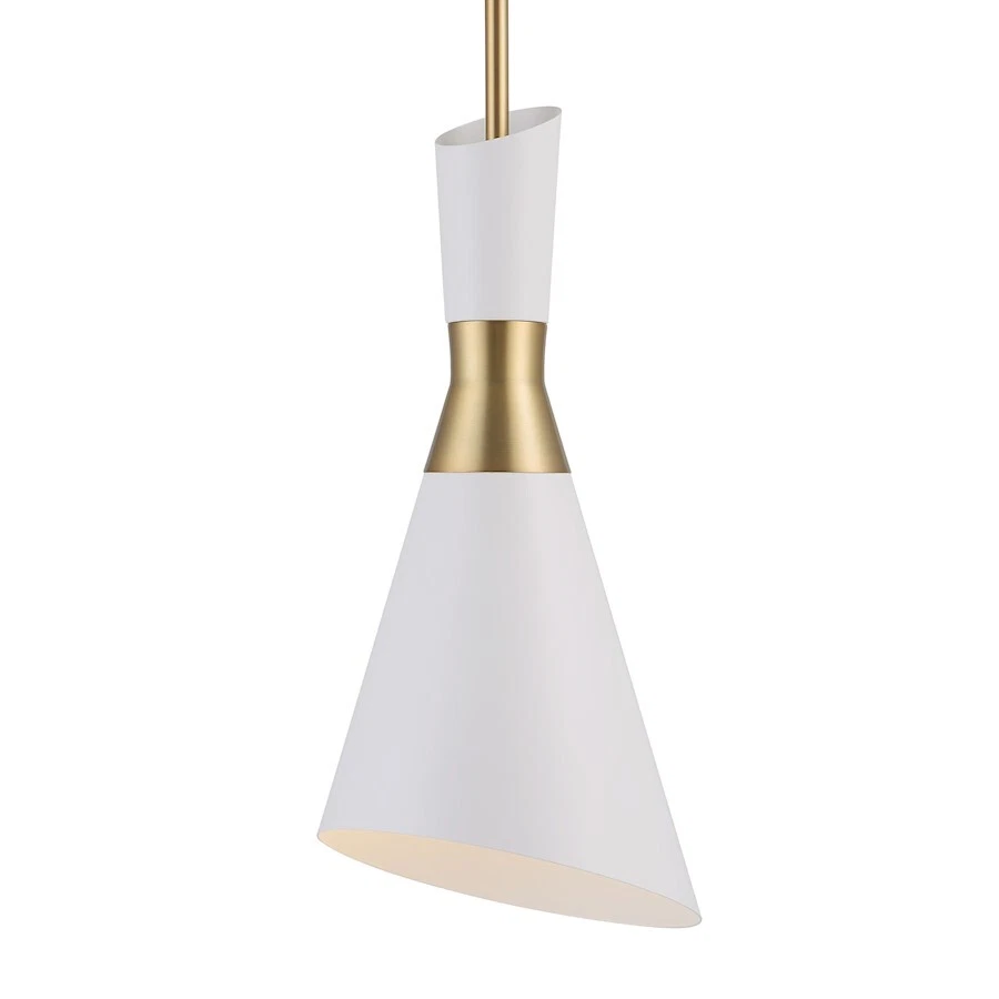 Uttermost Eames 1 Light Modern Mini Pendant, Brass/White - 21560