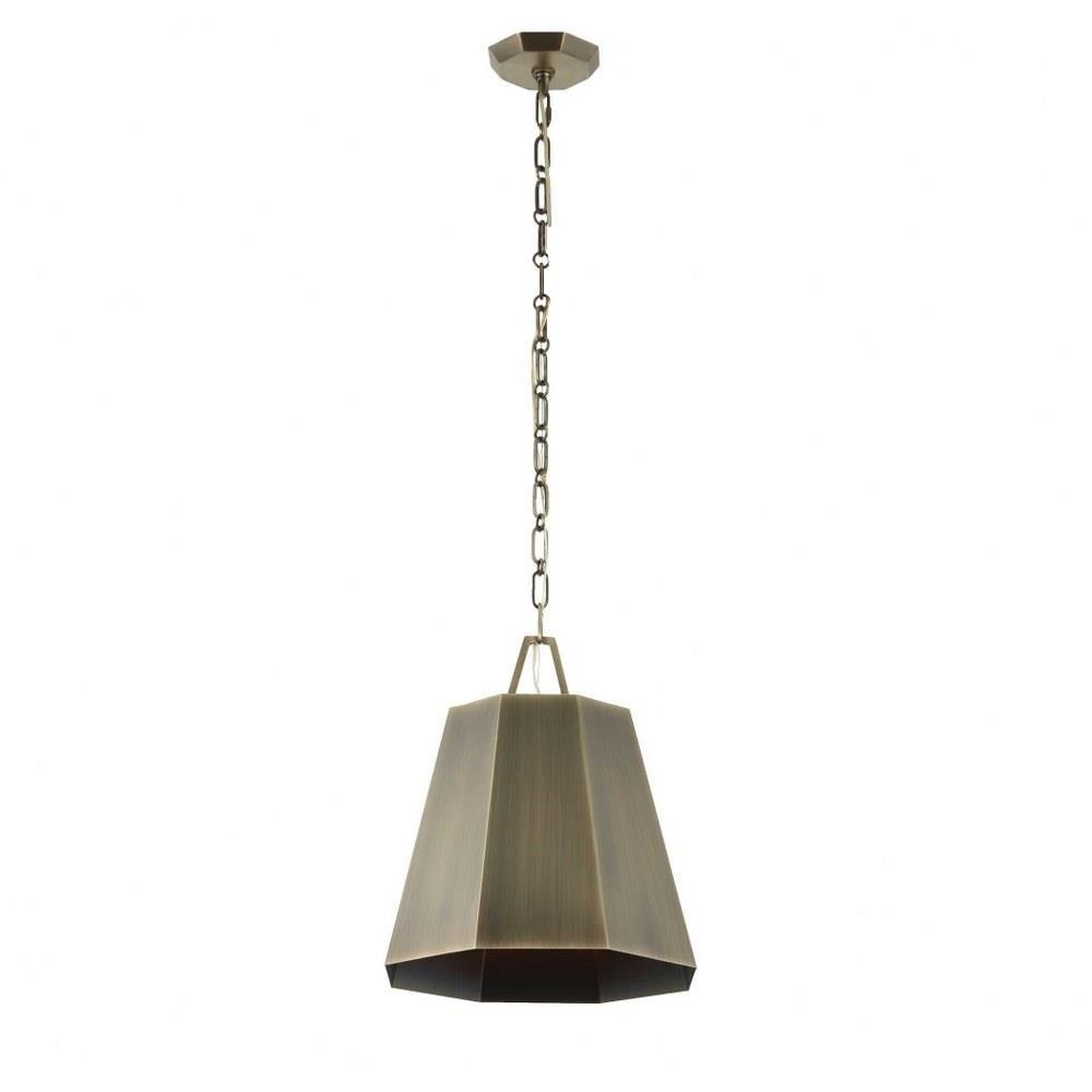 Rich Weathered Brass Gives A Brawny Feel To This Hexagon Shade Pendant. 1-60 Watt Max Edison Socket. Bulb Not Included. Supplied With 15’wire, 7’ Chain For Adjustable Installation.
