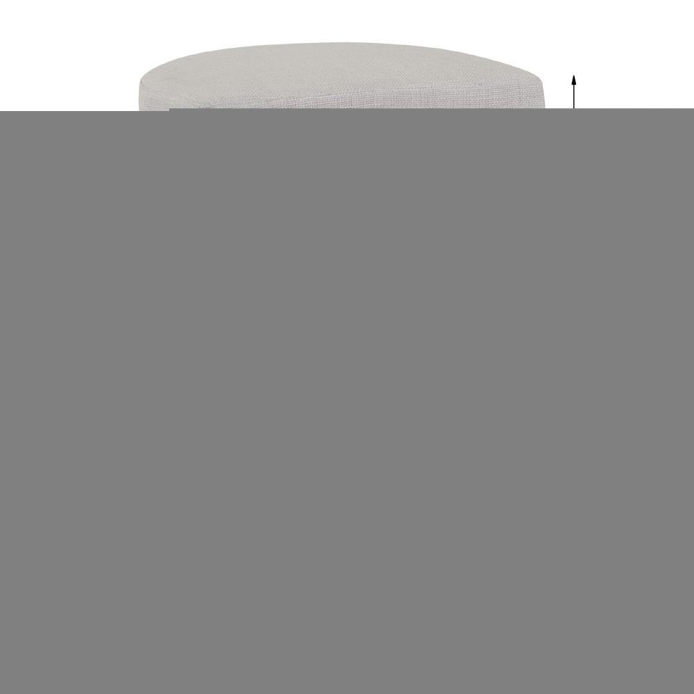 Simplistic But Sturdy, This Statement Counter Stool Features A Thick Hand Forged Iron Base Finished In Matte Black. Plush Seat Is Tailored In An Off-white Linen Blend Fabric. Seat Height Is 26 Inch.