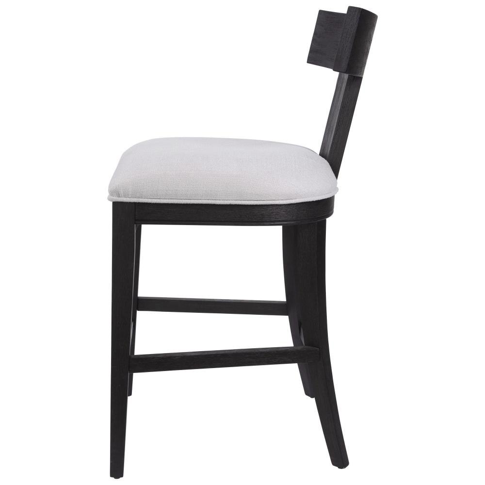 This Modern Take On A Klismos Design Features A Curved Rubber Wood Frame That Has Been Wire Brushed And Rubbed In A Charcoal Black Stain, Paired With A White Slubbed Performance Fabric Cushion. Seat Height Is 26".