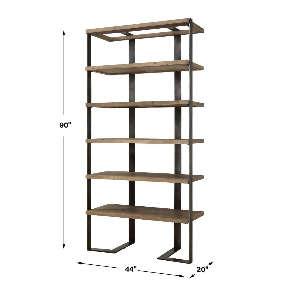 Crafted From Metal And Reclaimed Wood This Five-shelf Design Is A Beautiful Combination Of Natural Oak And Iron In A Oxidized Black Finish. Solid Wood Will Continue To Move With Temperature And Humidity Changes, Which Can Result In Small Cracks And Uneven Surfaces, Adding To Its Authenticity And Character.