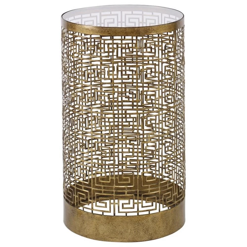Uttermost Algernon 14" Round Iron and Glass Top Accent End Table in Gold