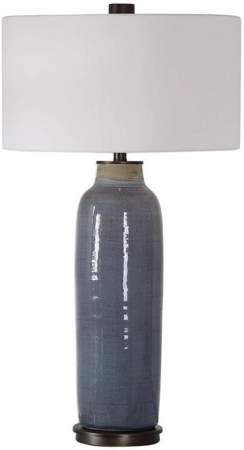 - Vicente Contemporary Steel and Fabric Table Lamp in Slate Blue