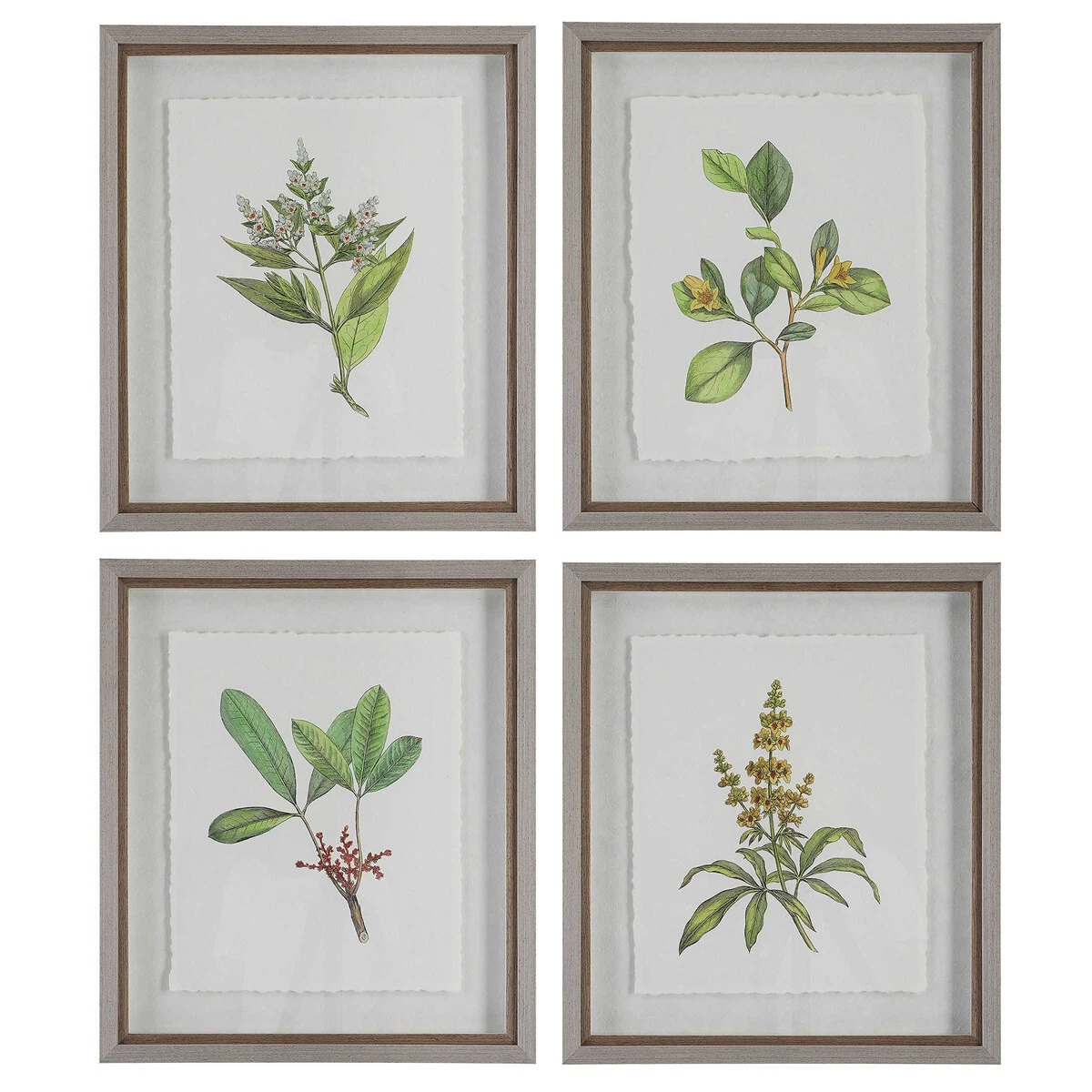 Wildflower Study Botanical Prints Flower Framed Wall Art Set ~ Uttermost 41461