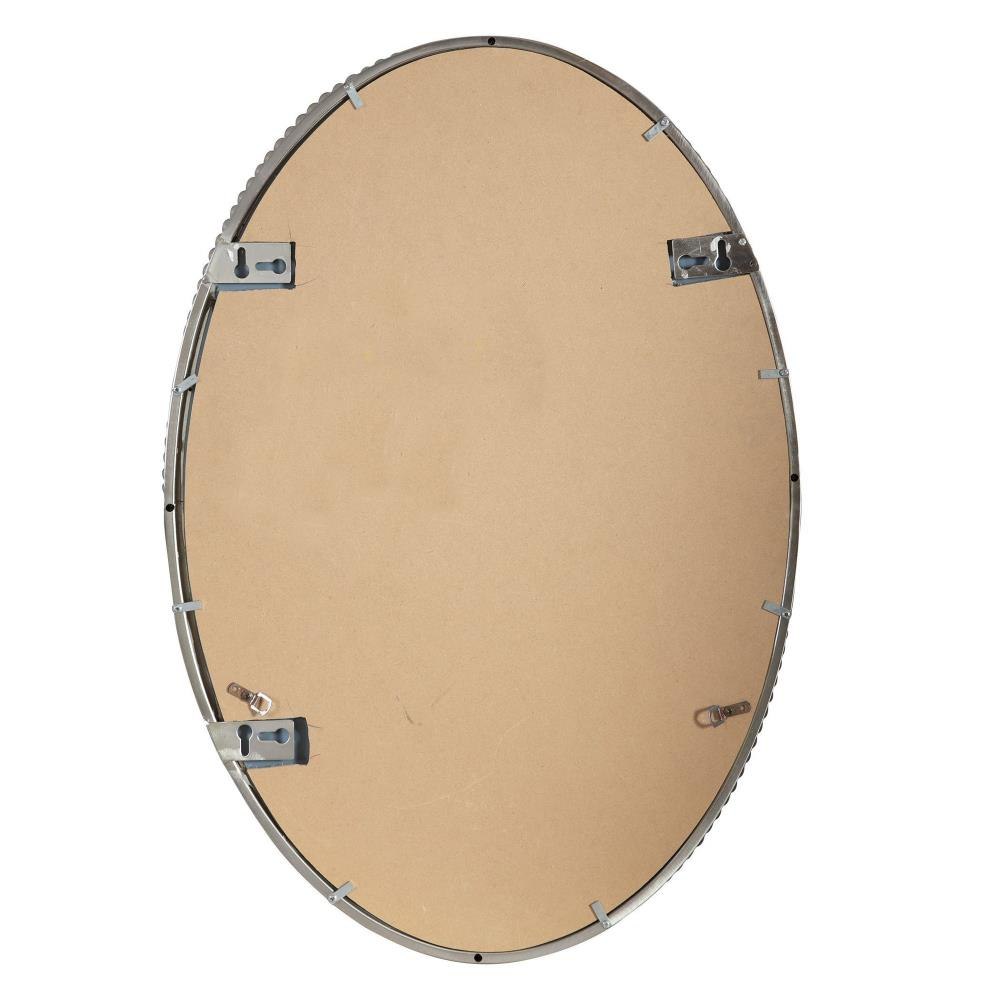 This Oval Mirror Features A Frame Made Of Hand Forged Metal With A Brushed Nickel Finish. Mirror Is Beveled. This Mirror May Be Hung Vertical Or Horizontal.