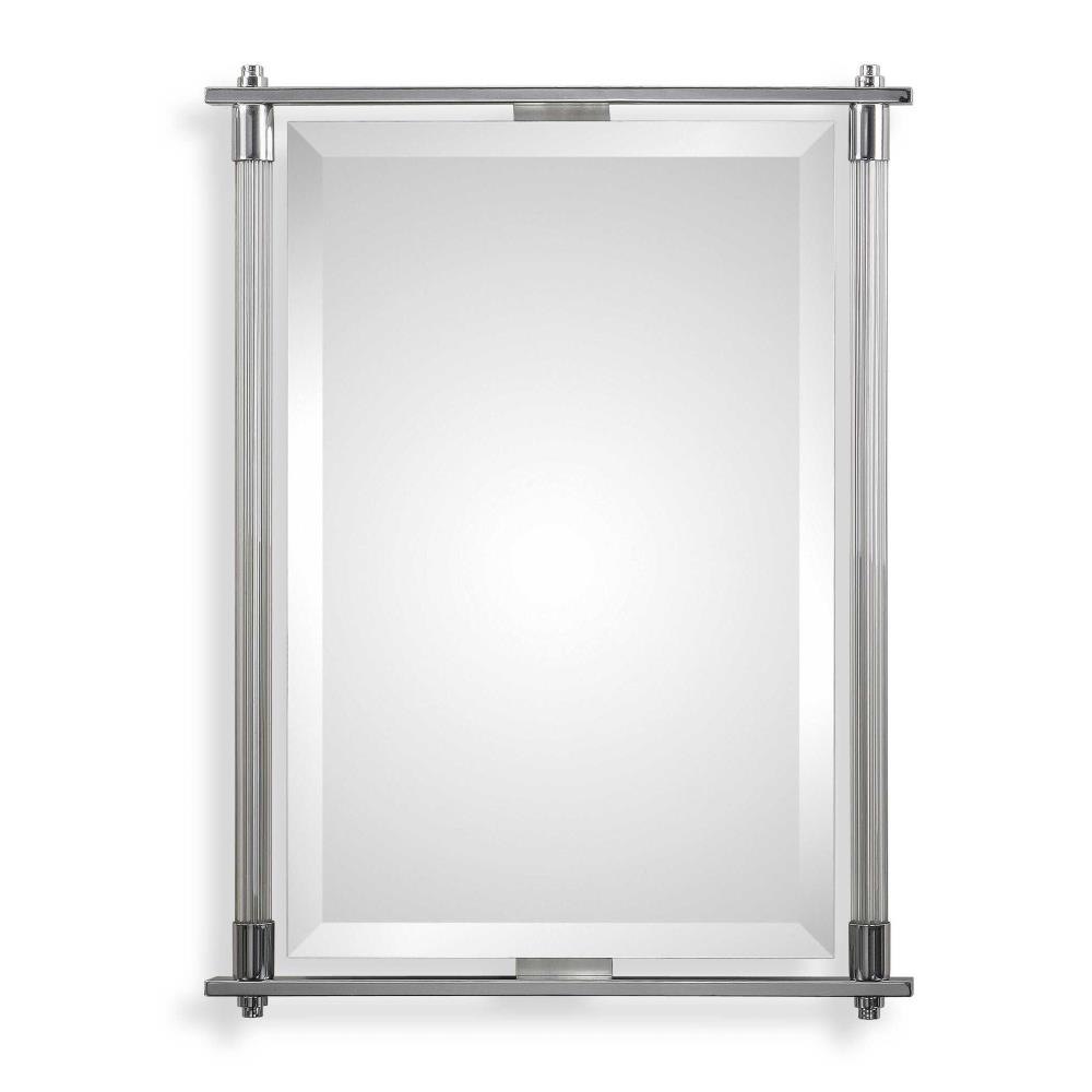 Ribbed Glass Columns Accented With Polished Chrome Plated Details. Mirror Features A Generous 1 1/4" Bevel. May Be Hung Either Horizontal Or Vertical.
