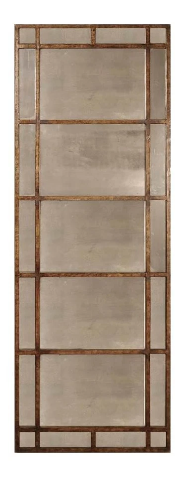 P Heavily Antiqued Gold Leaf Avidan Narrow Metal Framed Antiqued Mirror