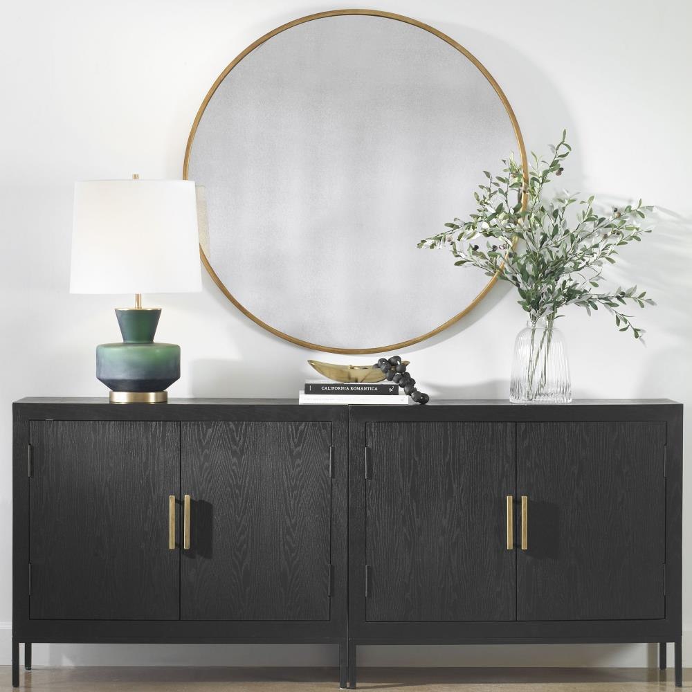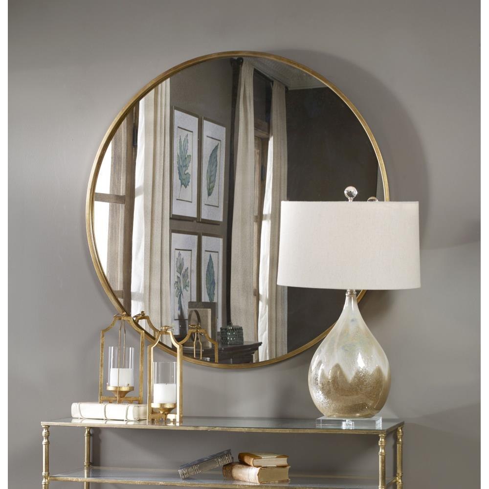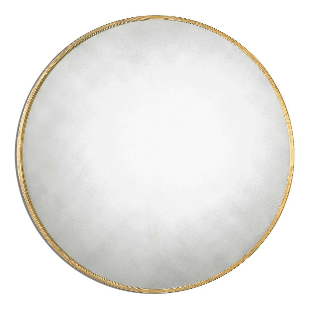 Narrow Metal Frame With A Heavily Antiqued Gold Leaf Finish Surrounds The Antique Style Mirror.