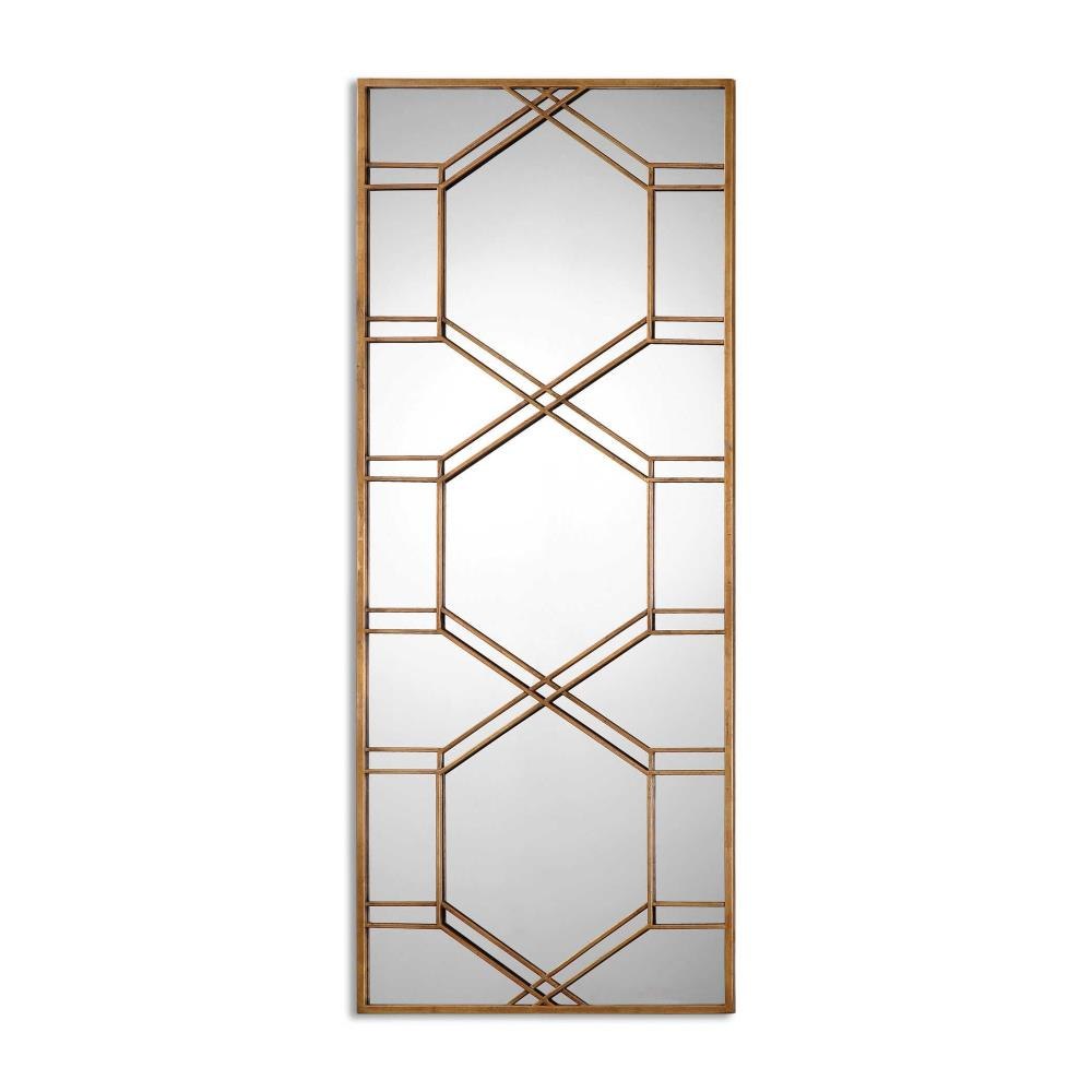 Decorative Mirror Featuring A Narrow, Metal Frame Finished In Heavily Antiqued, Gold Leaf. May Be Hung Horizontal Or Vertical.
