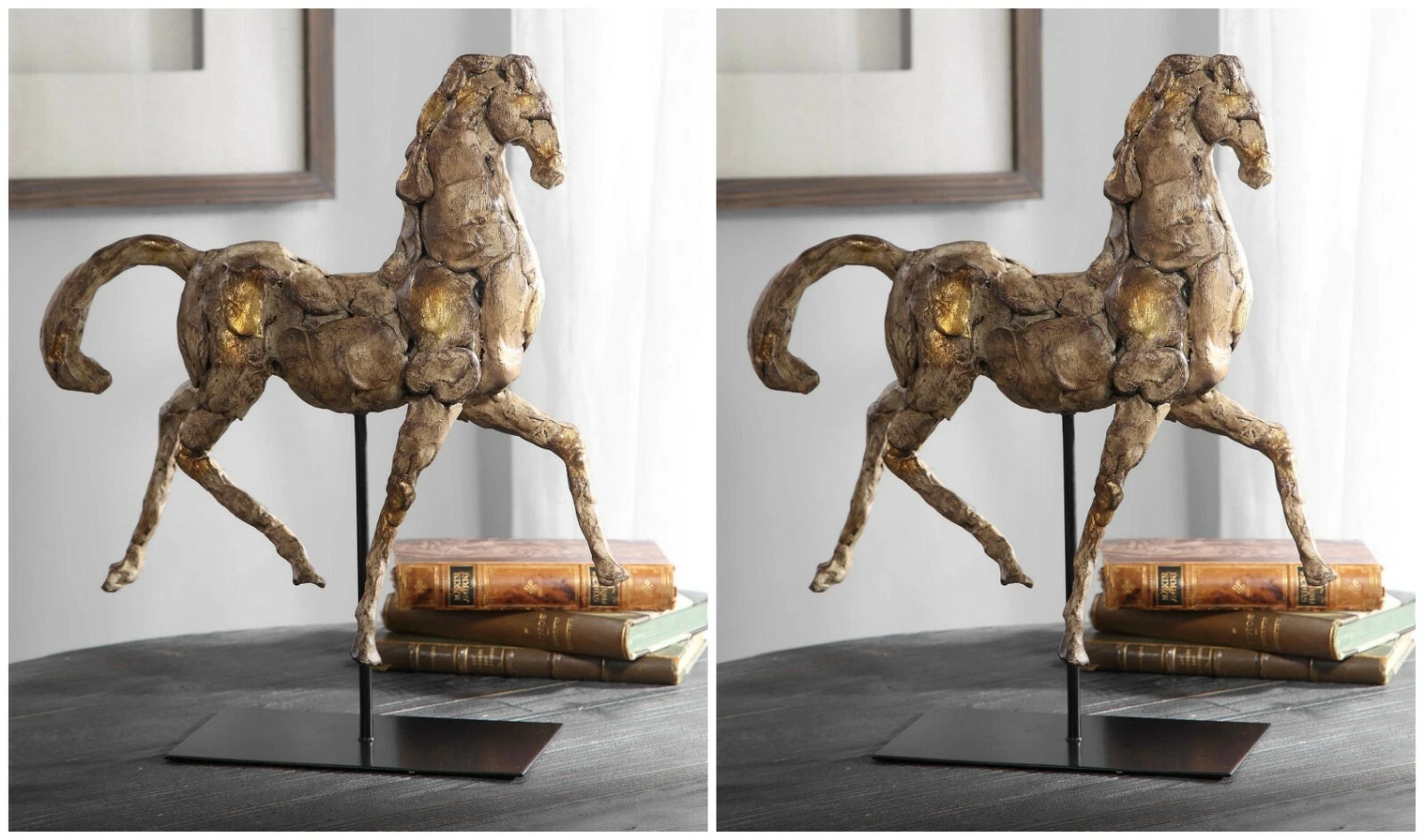 TWO FARMHOUSE RESTORATION XXL 17" HORSE STATUE SCULPTURE AGED FINISH 17585