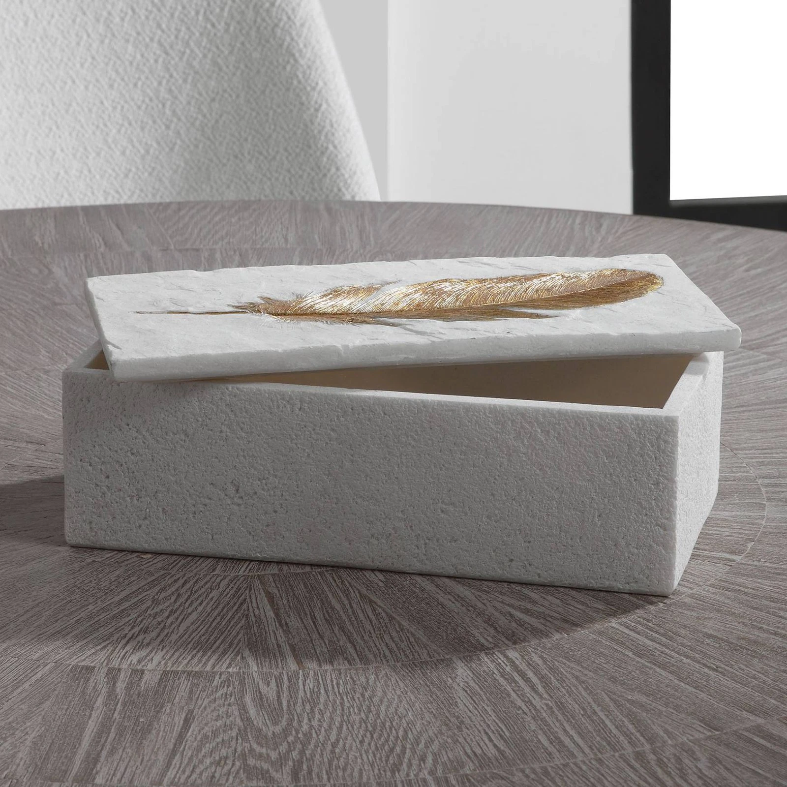 Nephele 12 1/4" Wide Gold Feather Decorative Box