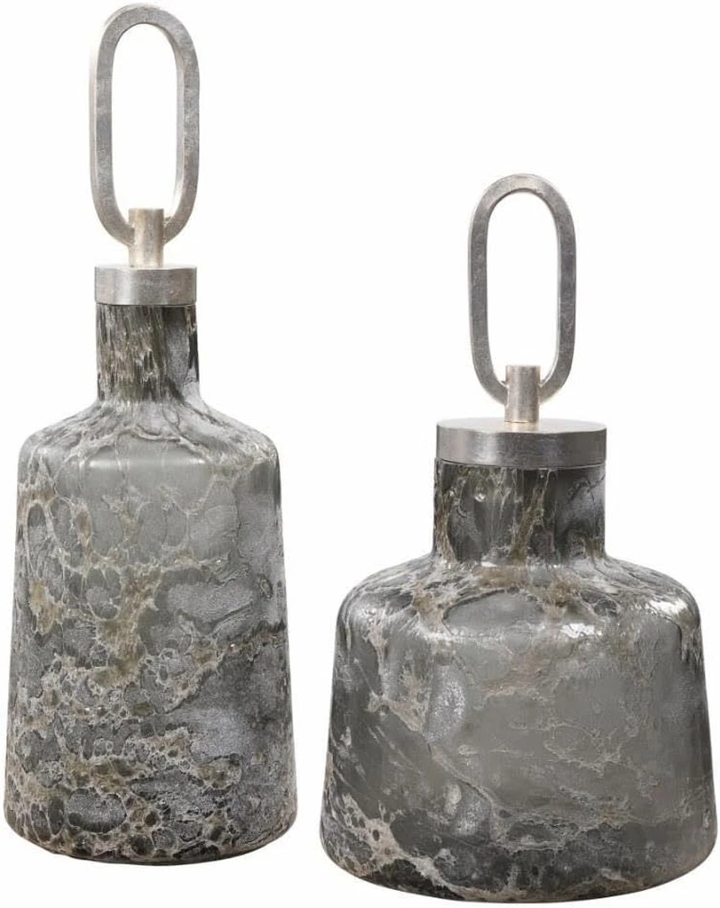 Set of 2 Charcoal Art Glass Bottles - 17.5 Inch, Stylish Home Decor