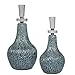 Set of two ceramic bottles feature an organic textured finish in a distressed dark teal glaze, paired with polished nickel accents and thick crystal details. Sizes: S-6x14x6, L-8x16x8