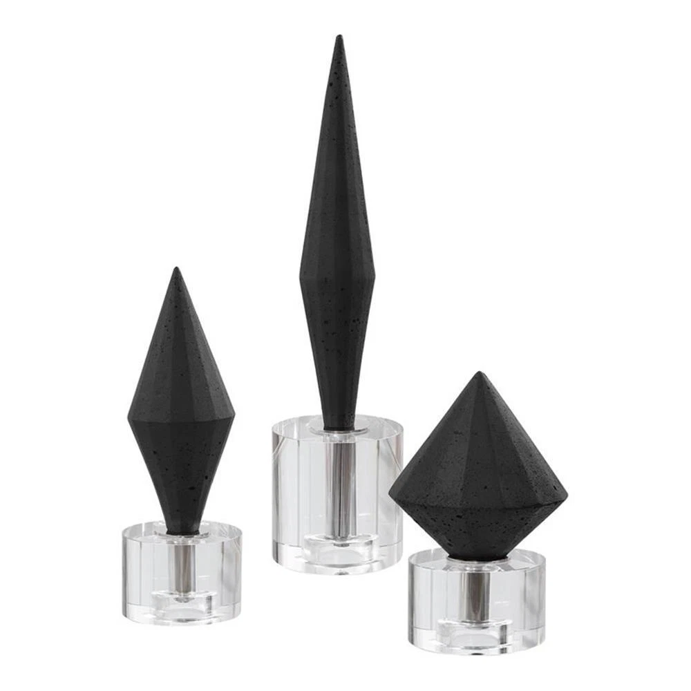 Uttermost Alize Stone and Crystal Sculptures in Elegant Black (Set of 3)