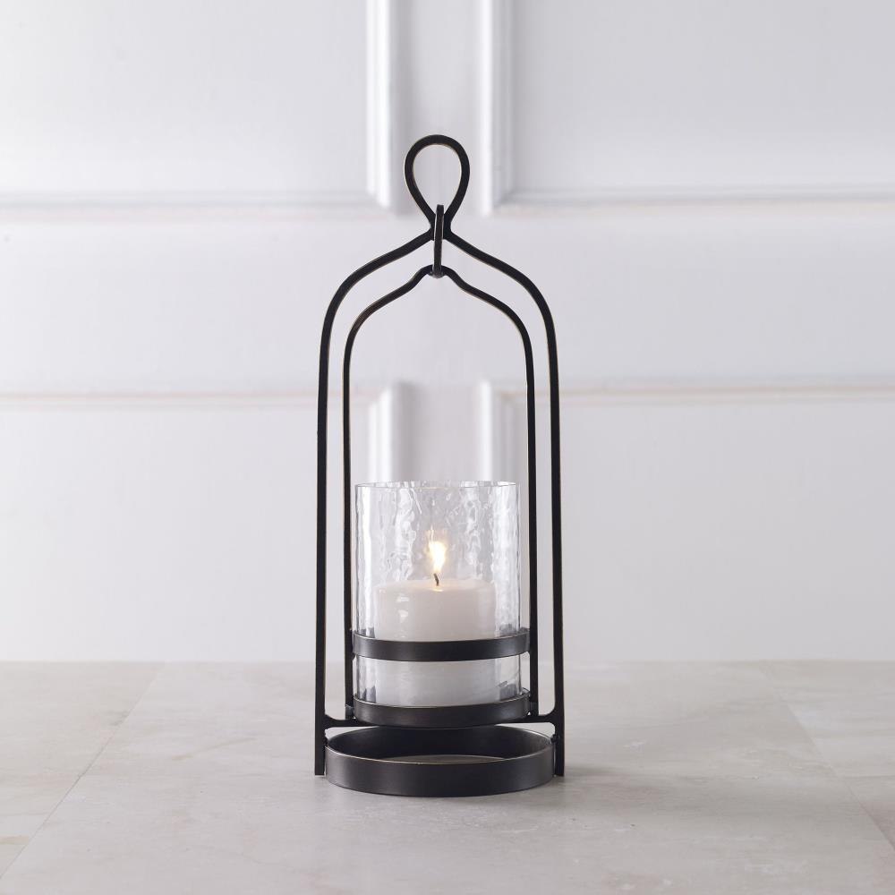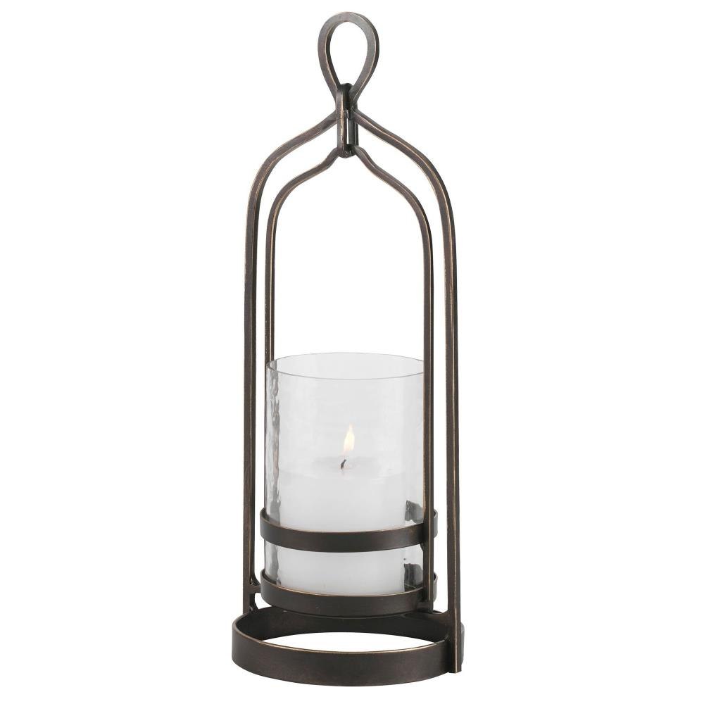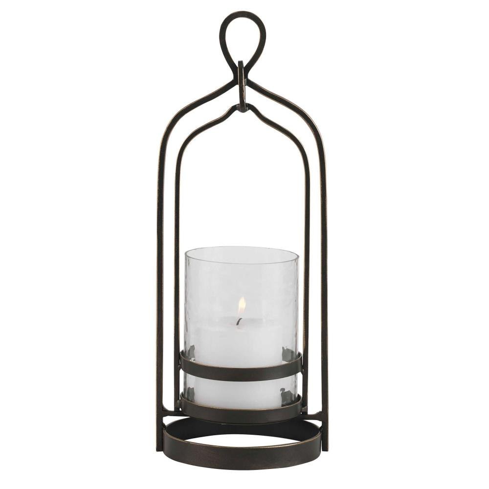 Taking Cues From Moroccan Style, This Candleholder Is Finished In Dark Bronze With Gold Rub-through Details And A Textured Glass Hurricane. One White 3"x 3" Candle Is Included.
