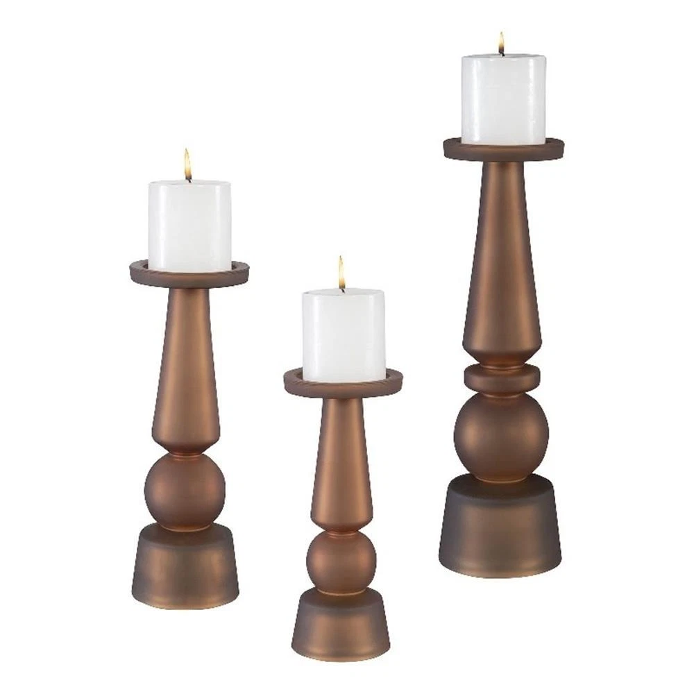 Uttermost Cassiopeia Butter Rum Glass Candleholders in Brown (Set of 3)