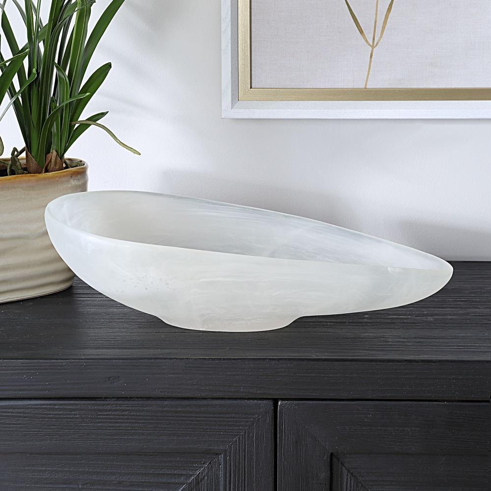 The Beauty Of The Marchena Bowl Is Its Organic Shape And Marbleized Finish. The Swirl Finish Consists Of Whites And Clear All Organically Swirled Together. Due To The Handcrafted Nature Of This Piece Each Item Will Vary.