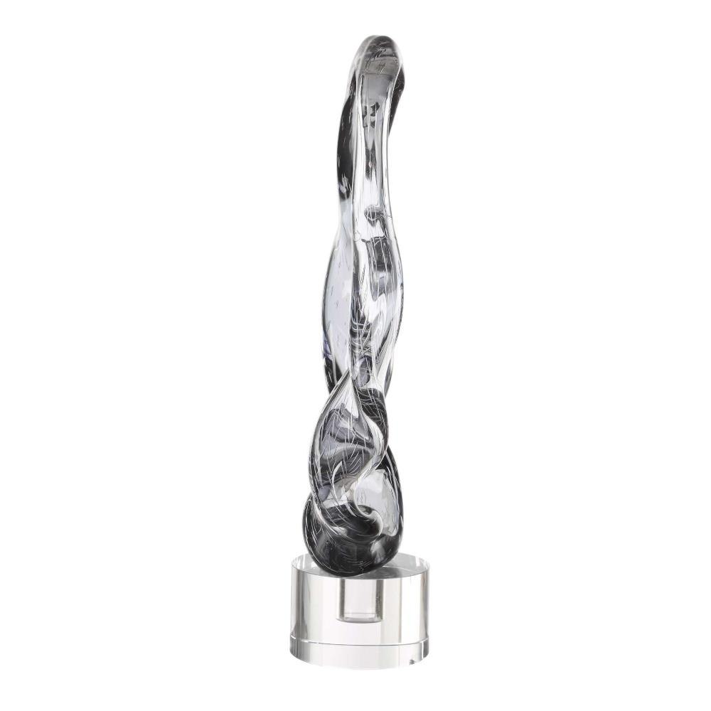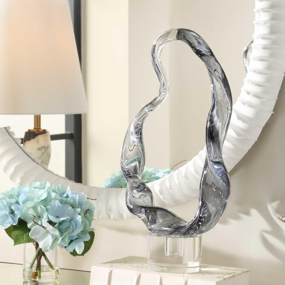 Elevate Your Space With This Elegant Smoked Glass Sculpture Sitting Atop A Crystal Base, Featuring Fluid, Organic Curves That Capture The Essence Of Movement And Modern Sophistication. Perfect As A Statement Piece Or A Refined Accent, Its Transparent Glass Reflects Light Beautifully, Adding A Touch Of Luxury To Any Setting.