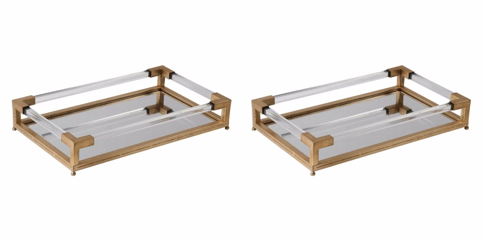 TWO BALKAN 24" DISPLAY SERVING TRAY METAL ACRYLIC DETAILS BEVELED MIRROR 18706