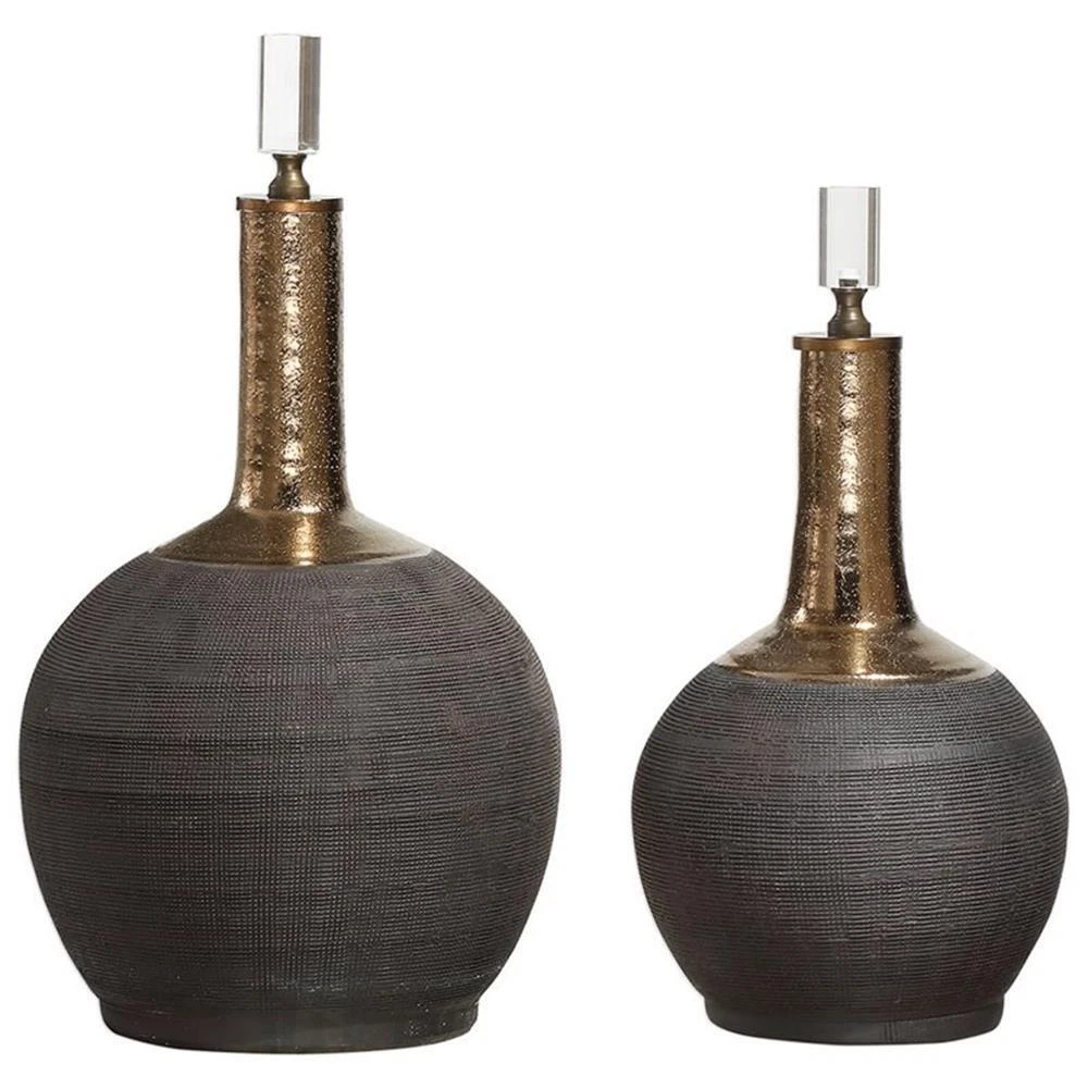 Uttermost Arnav 2-Piece Ceramic Crystal Metal Bottle Set in Matte Black and Gold