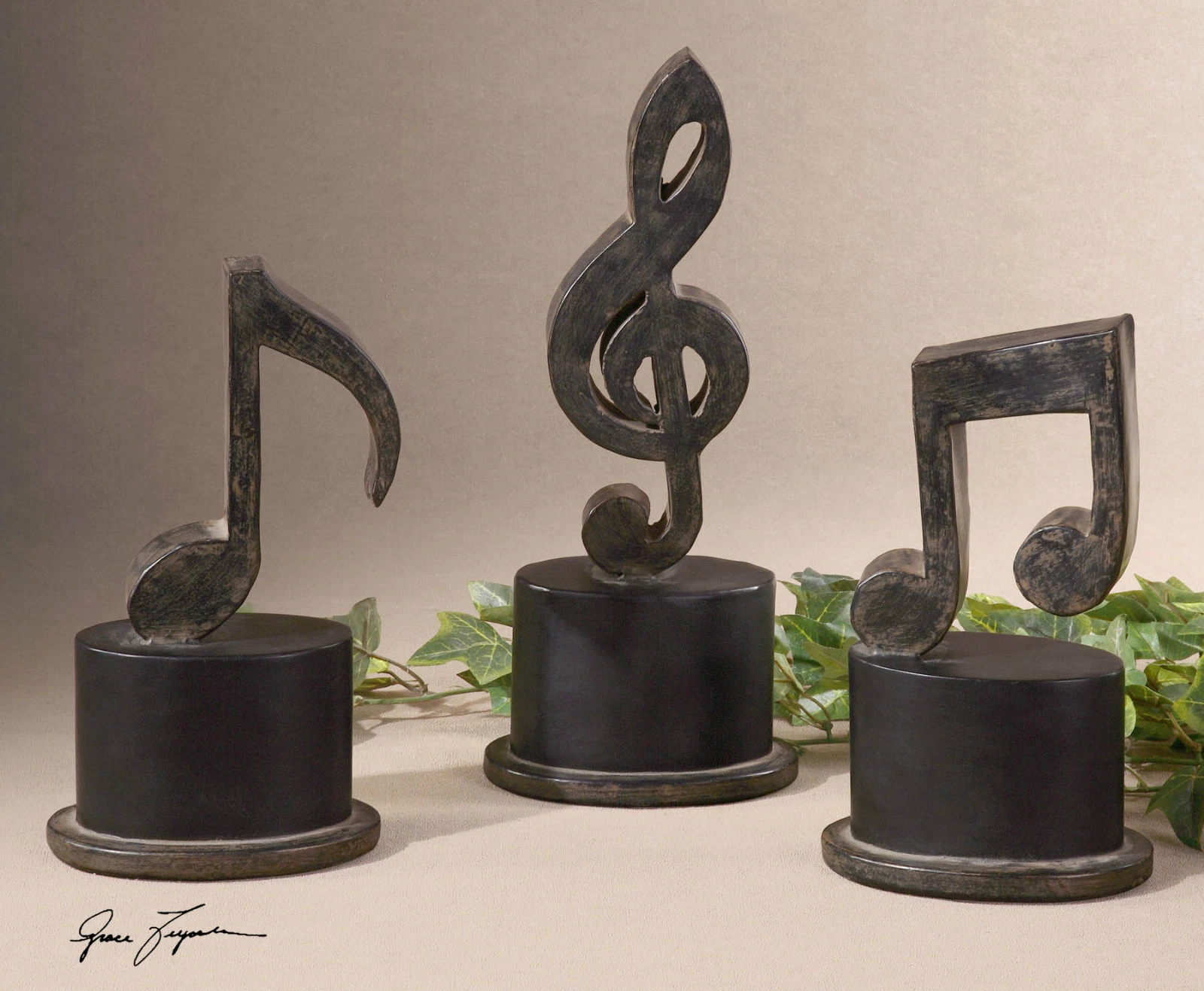 SET OF THREE INDUSTRIAL INSPIRED FORGED METAL MUSIC NOTES 19280