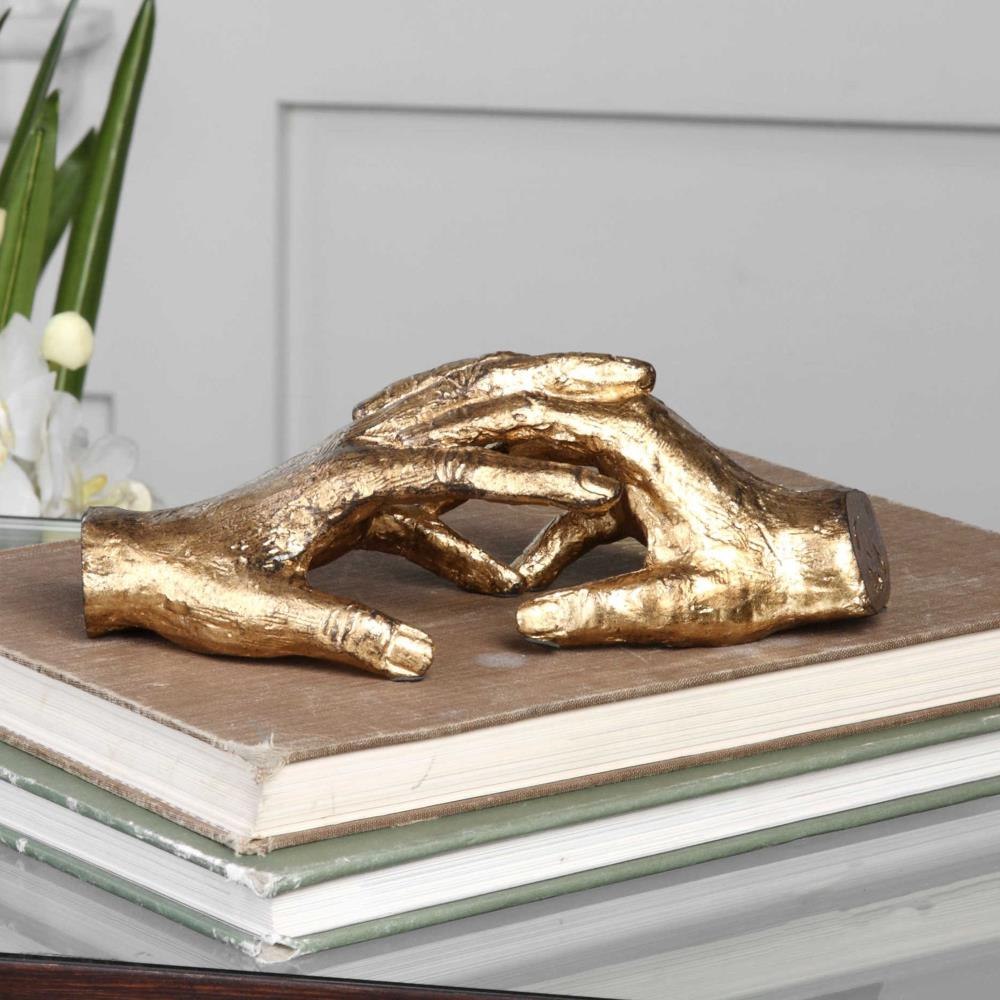 Antiqued Gold Leaf, Cast Iron Sculpture Of Hands, Forever Intertwined, Remind Us Of The Comfort And Joy Physical Connection Brings.