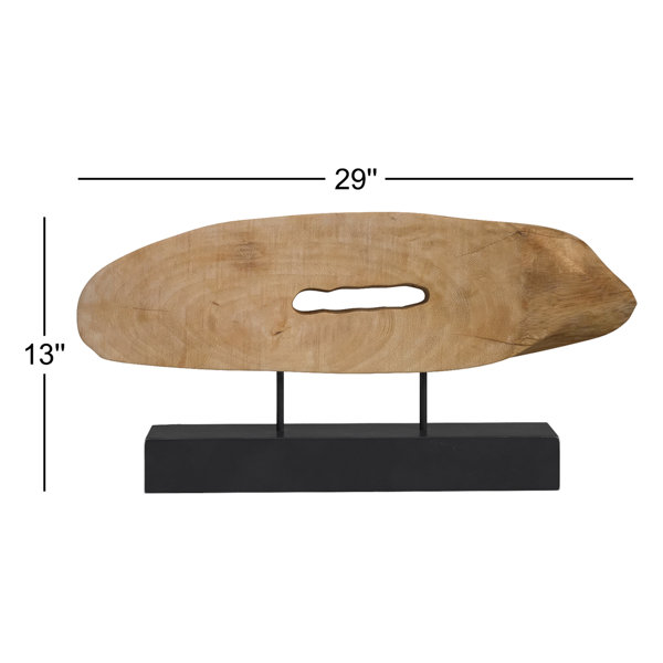 Add a touch of artful elegance to your home with this abstract solid wood sculpture. Handcrafted from mango wood, this one-of-a-kind piece showcases a striking blend of black and brown hues, making it a versatile addition to any décor style. Its unique design and intricate details are sure to spark conversation and admiration from guests. Place it on a mantel, bookshelf, or coffee table to elevate your space with a touch of artistic charm. Each piece is handcrafted making it unique. Sizes will vary. Cracks and variations in the grain are normal. Natural Variation: this product is made of natural materials which makes it unique and can lead to slight color/size variations.