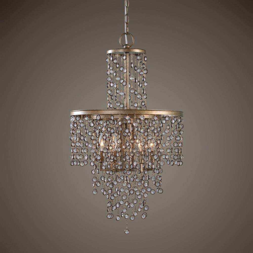 Refined 6 Lt. Tiered Chandelier In A Silver Swedish Iron Finish, Which Is A Silver Undercoat Then A Heavy Dark Bronze Antiquing Applied Over The Silver Giving A Deep Darker Tone To The Fixture. Jewelry Chains Of Encircled Cut Crystals Gracefully Rain Downward In A Classic Refined Look.