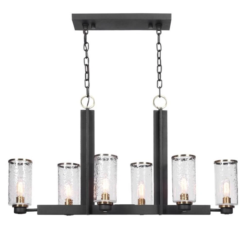 - Uttermost Jarsdel 6-Light Farmhouse Steel and Glass Island Light