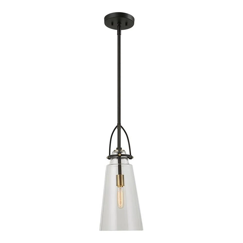 - Uttermost Saugus 1-light Steel and Glass Pendant in Black and Bra