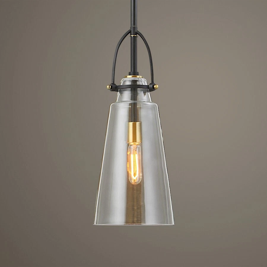 Uttermost Saugus Industrial 1 Light Pendant, Black/Brass - 21562