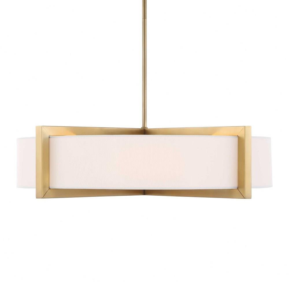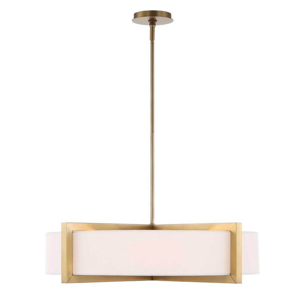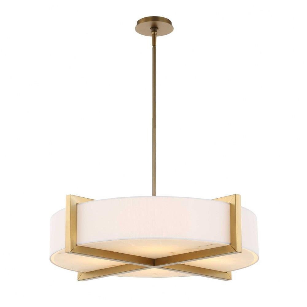 Hardback White Linen Hanging Shade With Architectural Beam Detail Enhanced In A Matte Brushed Brass Finish With A Lower Faux Alabaster Diffuser. 4-60 Watt Max, Edison Sockets. Bulbs Not Included. Supplied With 15' Wire, 3-12" Stems,and 1-6" Stem For Adjustable Installation Also Includes 1-3" Rod For Semi-flush Mounting Option.