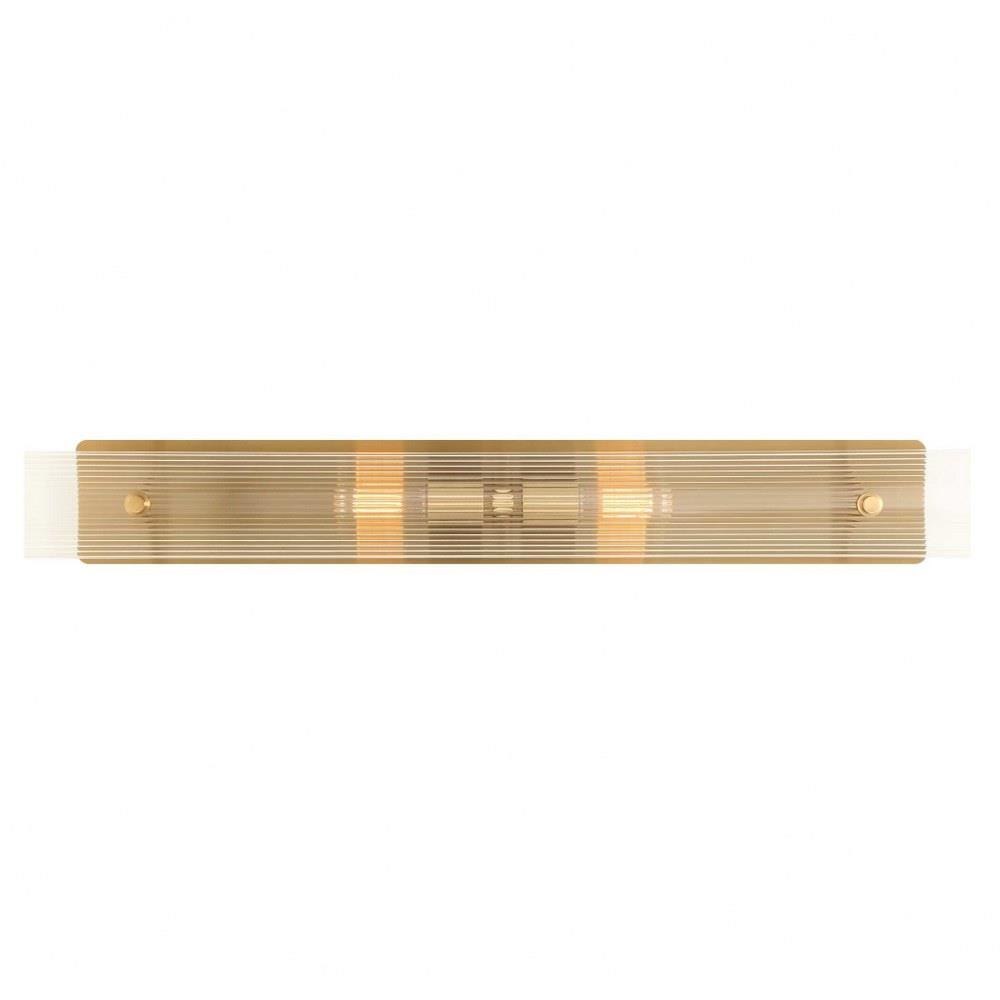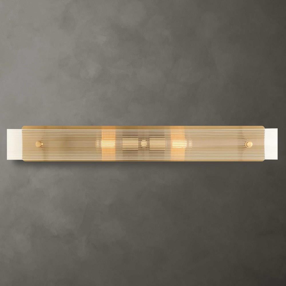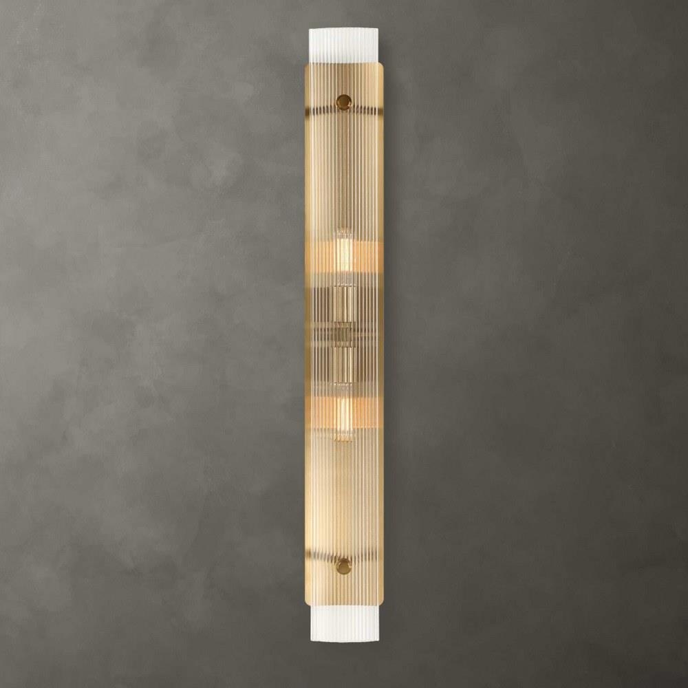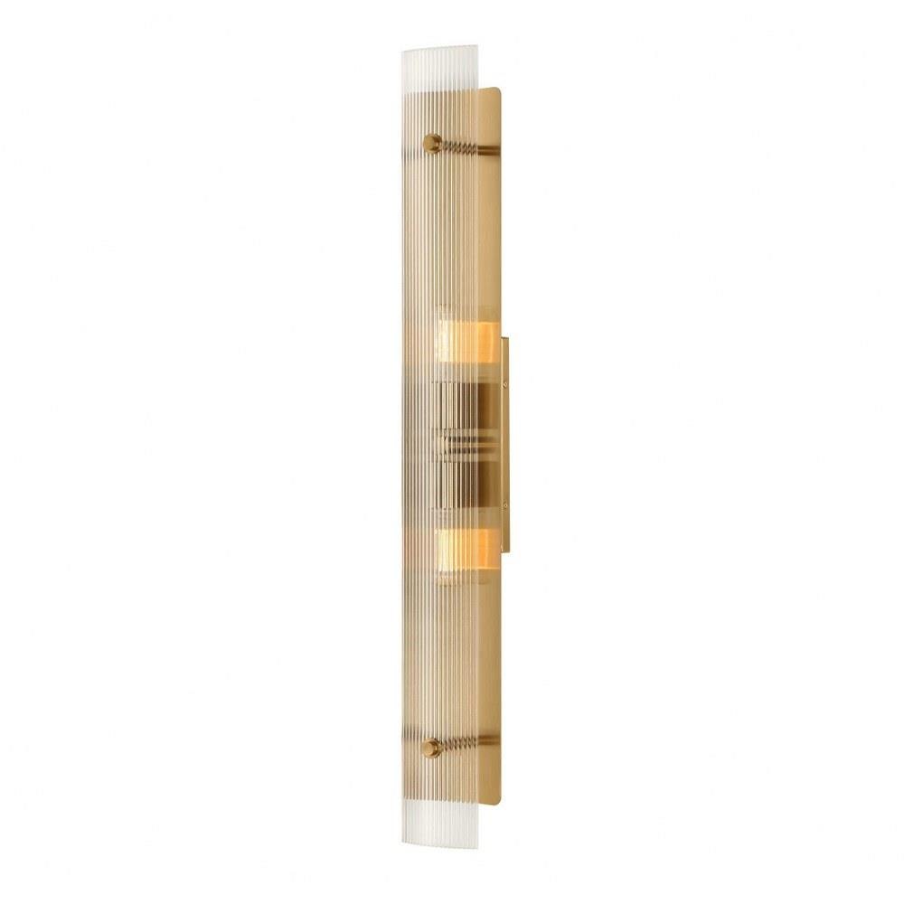 Reminiscent Traditional Lines Shows In This 2 Lt. Sconce Of Warm Brass Finish With Clear Ribbed Glass. Can Be Installed Horizontal Or Vertical As Sconce Or Vanity With It's Damp Label Certification. 2-60 Watt Max Edison Sockets, Our Designer Suggest Type T Bulbs. Bulbs Not Included.