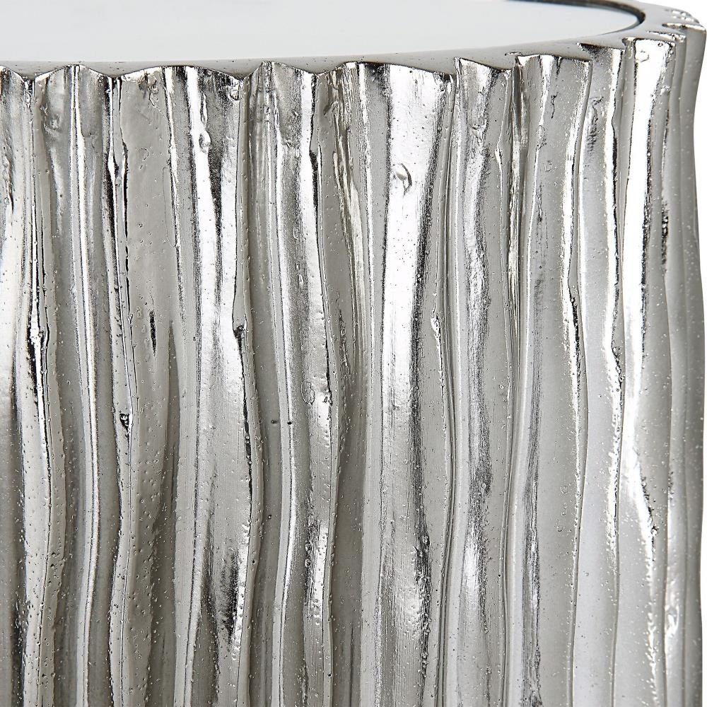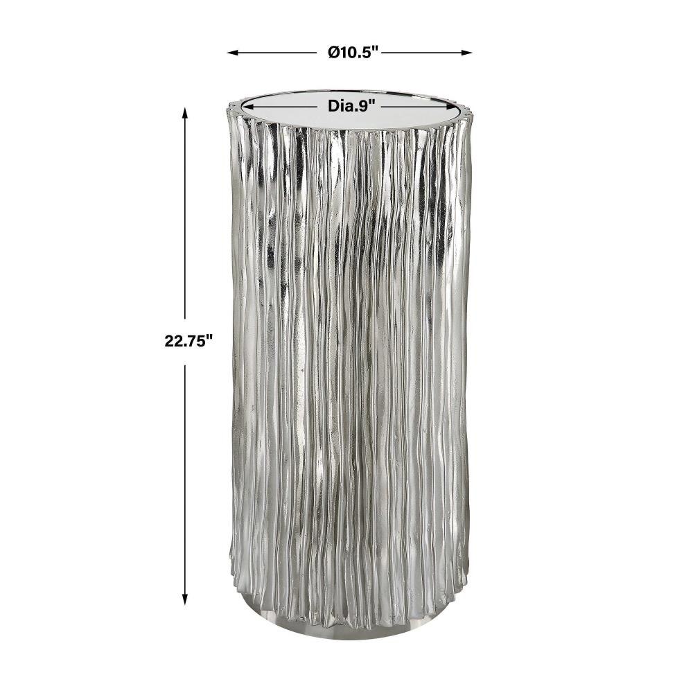 Waterfall Textures Make A Dramatic Statement In This Petite Drink Table. Finished In Polished Dark Nickel With A Mirrored Top.