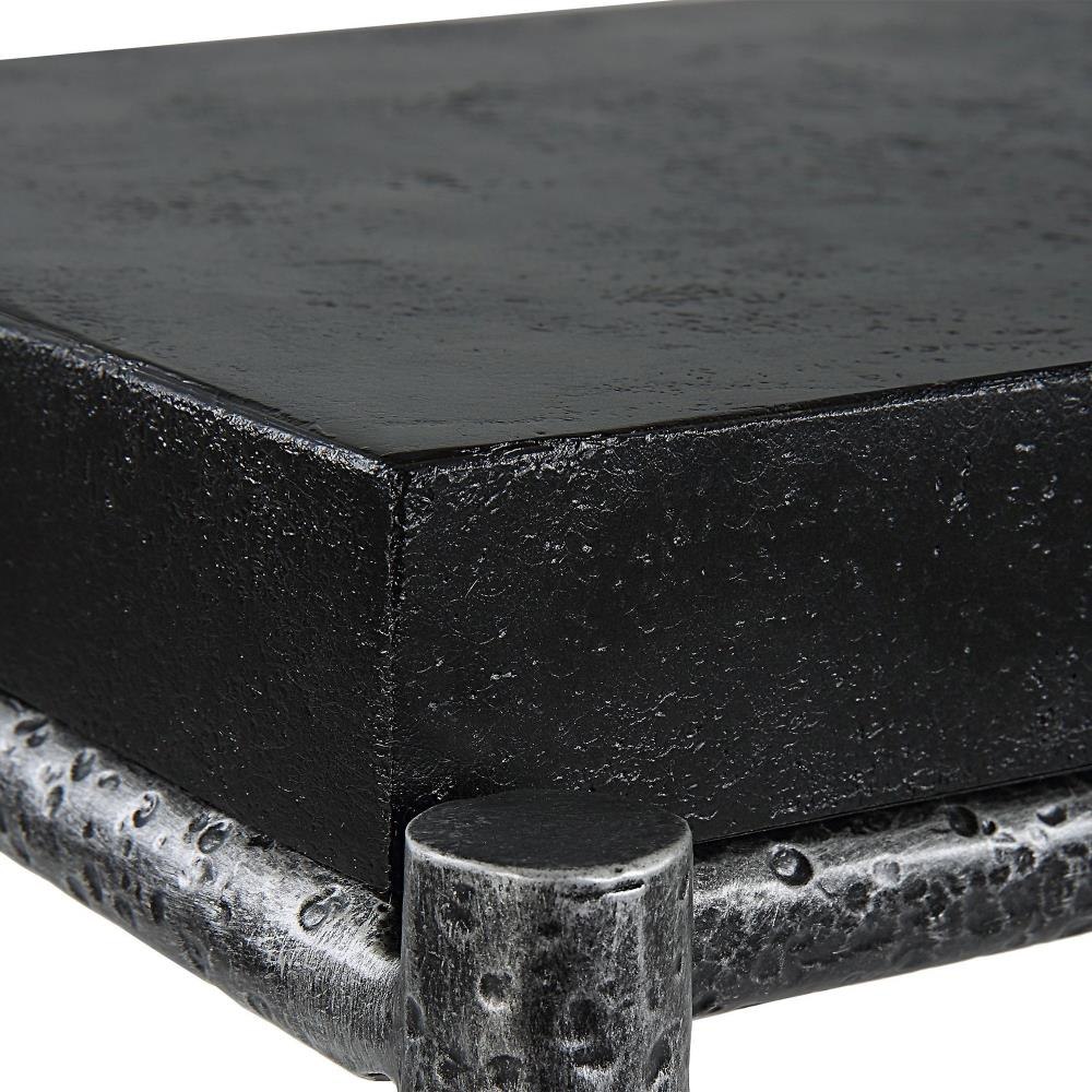 Heavily Textured Hammered Metal In Dark Silver Supports A Rich Black Natural Porous Concrete Top Adding A Contemporary Edge To Your Space.
