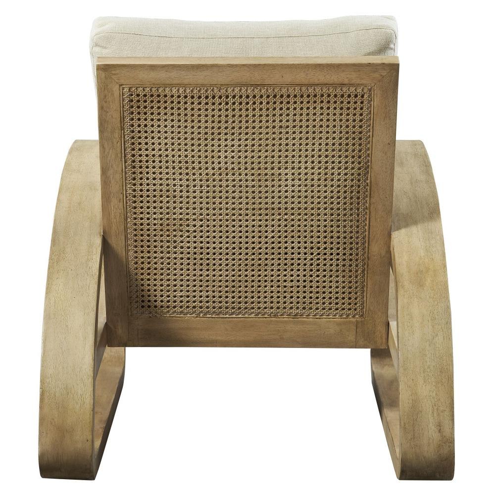 Mid-century Inspired With Modern Updates, The Barbora Lounge Chair Boasts A Beautiful Arched Arm Design In Solid Mango Wood With An Airy Fawn Finish Paired With Neutral Polyester Boxed Cushions. Seat And Back Surfaces Feature Natural Rattan Caning. Seat Height Is 18".