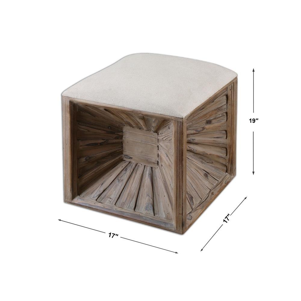 A Stylized Burst Of Natural, Weathered Fir Wood, This Versatile Cube Has A Cushioned, Tan Linen Top Doubling Its Use As A Seat Or A Footrest.