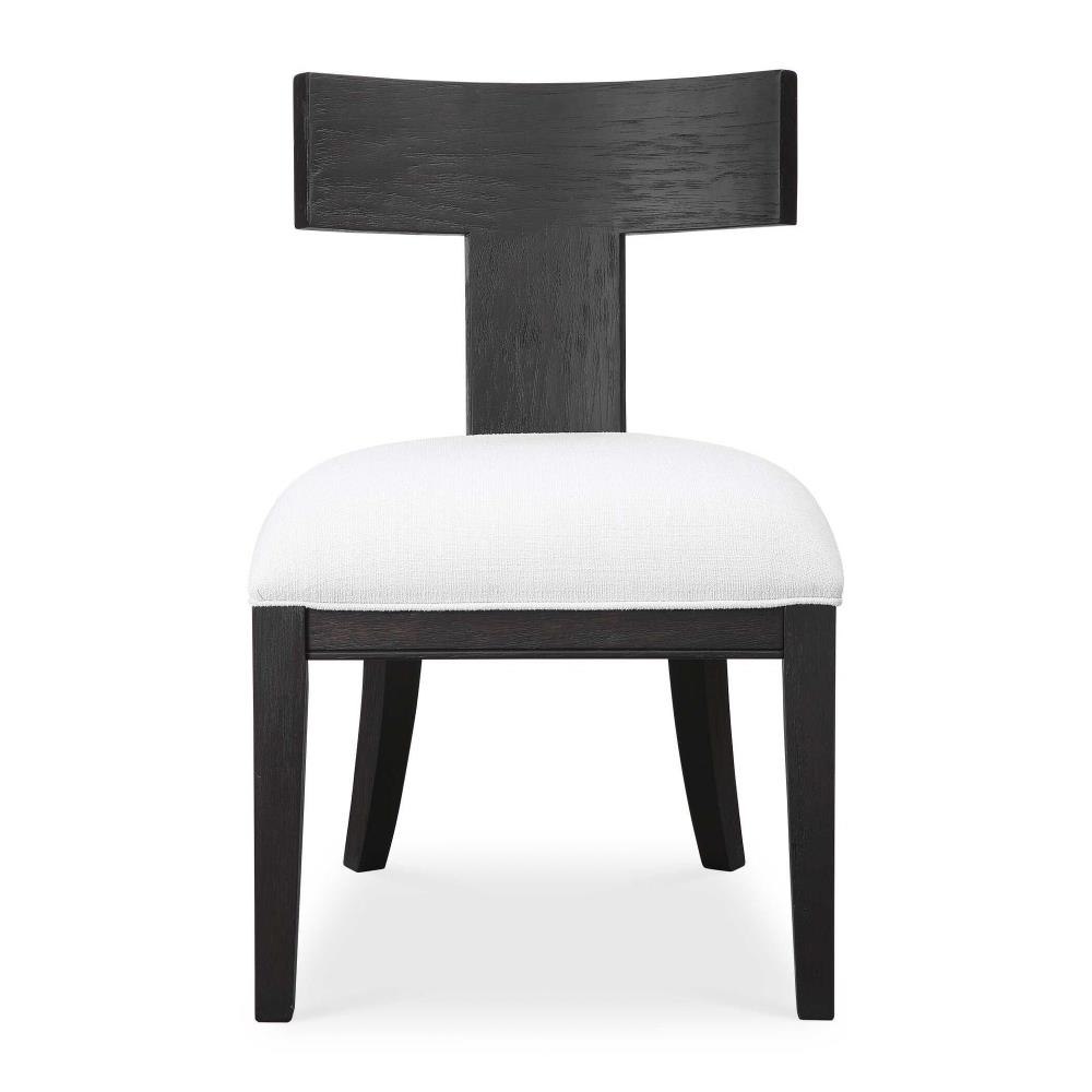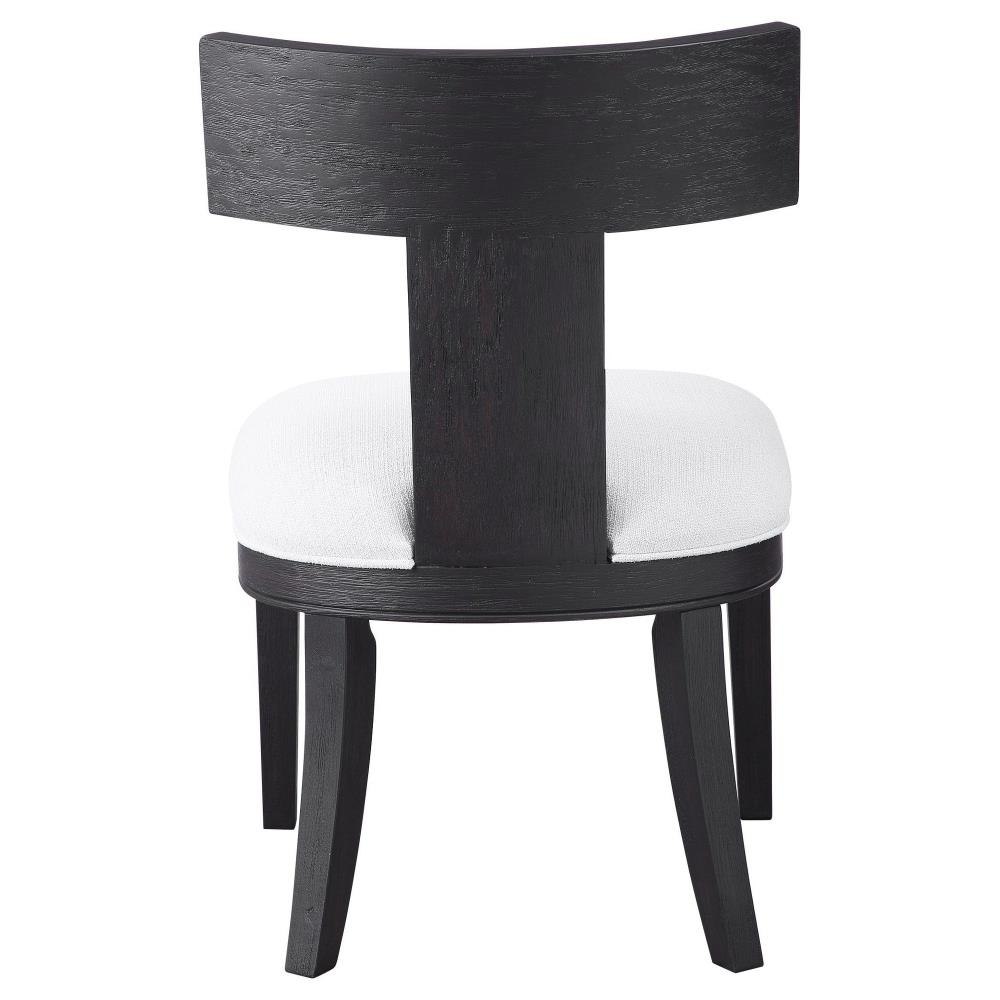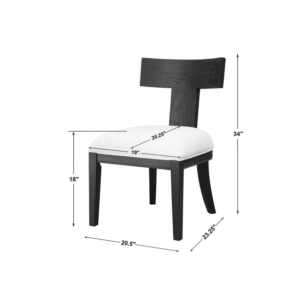 This Modern Take On A Klismos Chair Features A Curved Birch Wood Frame That Has Been Wire Brushed And Rubbed In A Charcoal Black Stain, Paired With A White Slubbed Performance Fabric Cushion. Seat Height Is 18".