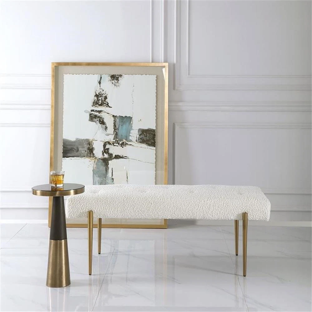 Uttermost Olivier Contemporary Fabric and Stainless Steel Bench in White