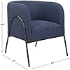 Inspired By Scandinavian Designs, This Barrel Back Style Chair Showcases Elegant Curved Lines With A Chiseled Iron Frame In A Natural Aged Black Iron Finish. A Casual Blue Denim Polyester Fabric Accents This Modern Look. Seat Height Is 19".