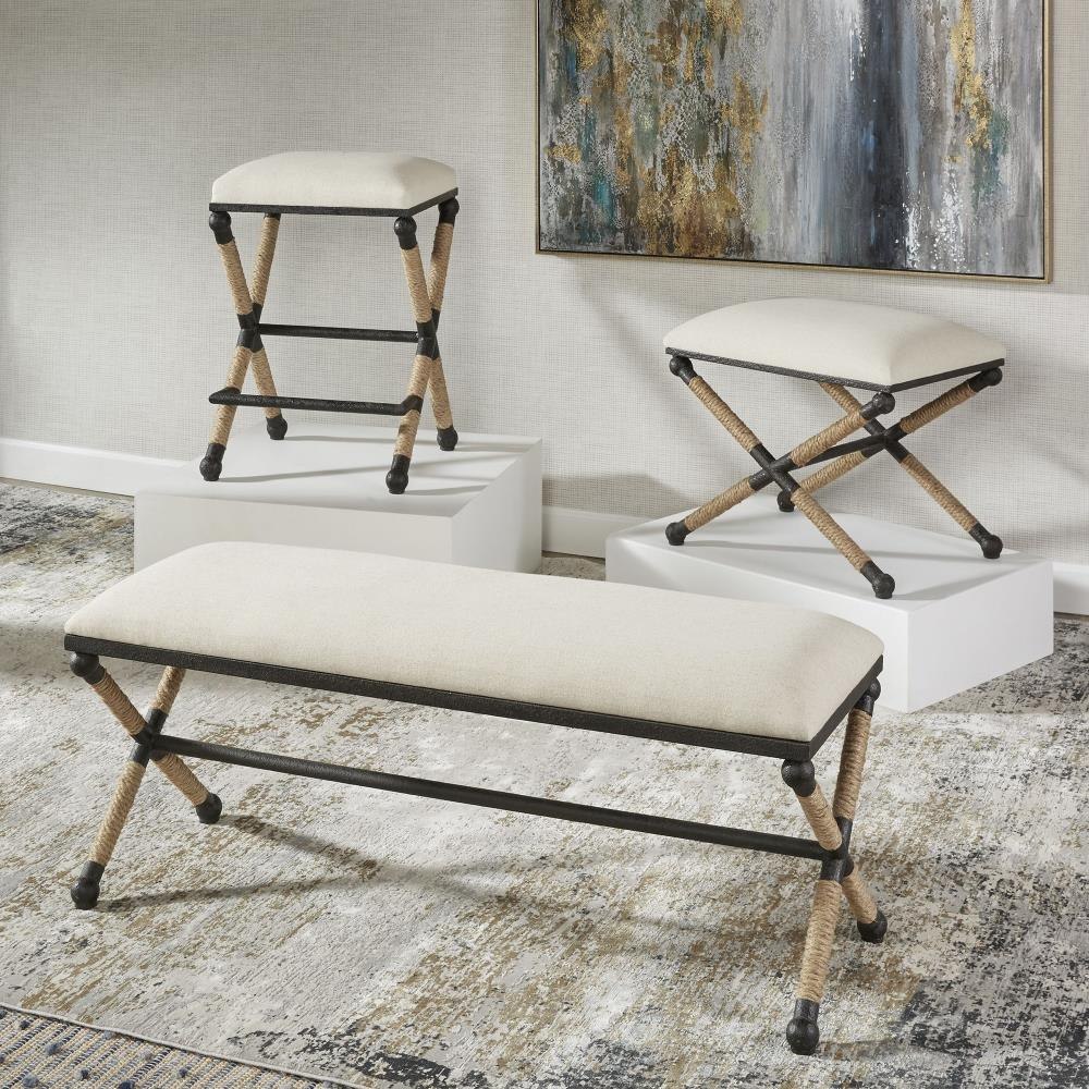 Rustic Iron Frame With A Nautical Touch, Wrapped In Natural Fiber Rope Accents. Cushioned Top Is A Sturdy, Cotton In A Neutral Oatmeal With Performance Treatment. Seat Height Is 28".