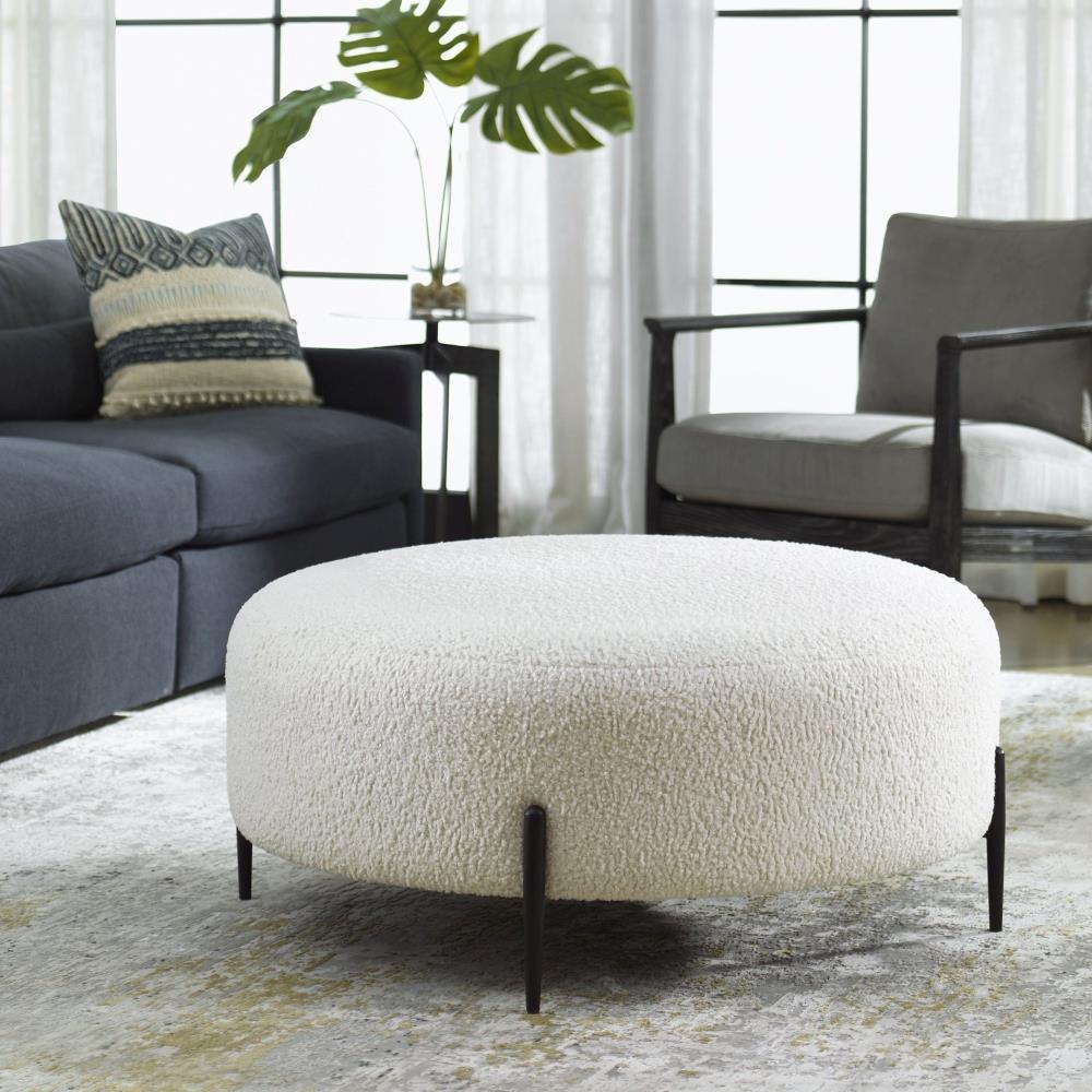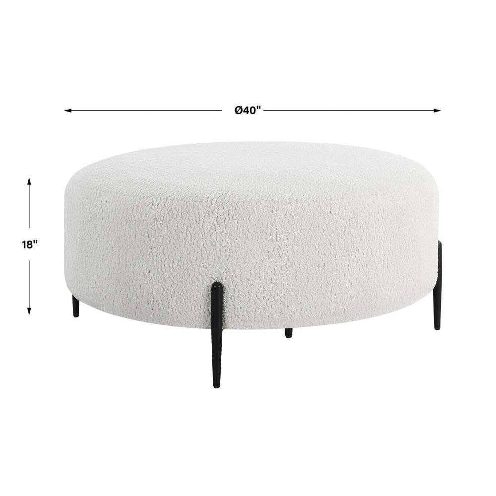 This Plush Ottoman Is Covered In A Luxurious White Faux Shearling, Suspended Within Satin Black Finished Metal Legs. Perfect As A Coffee Table Styled With A Tray.